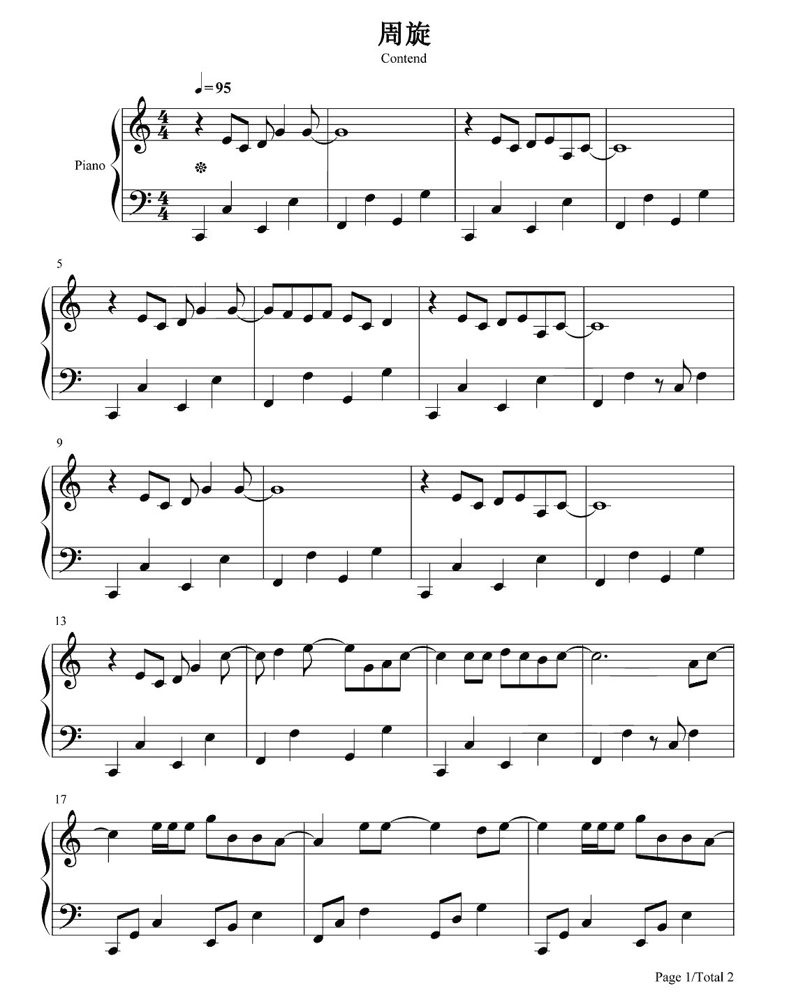 钢琴张瑶《周旋》钢琴谱 高清版