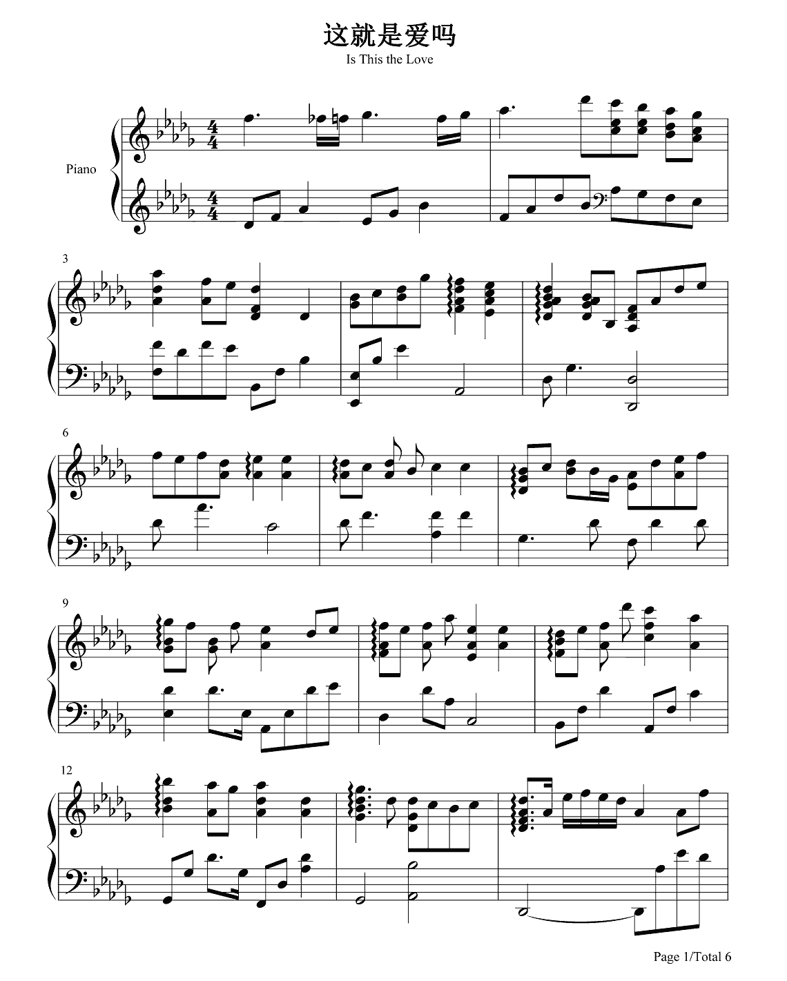 钢琴容祖儿《这就是爱吗》钢琴谱