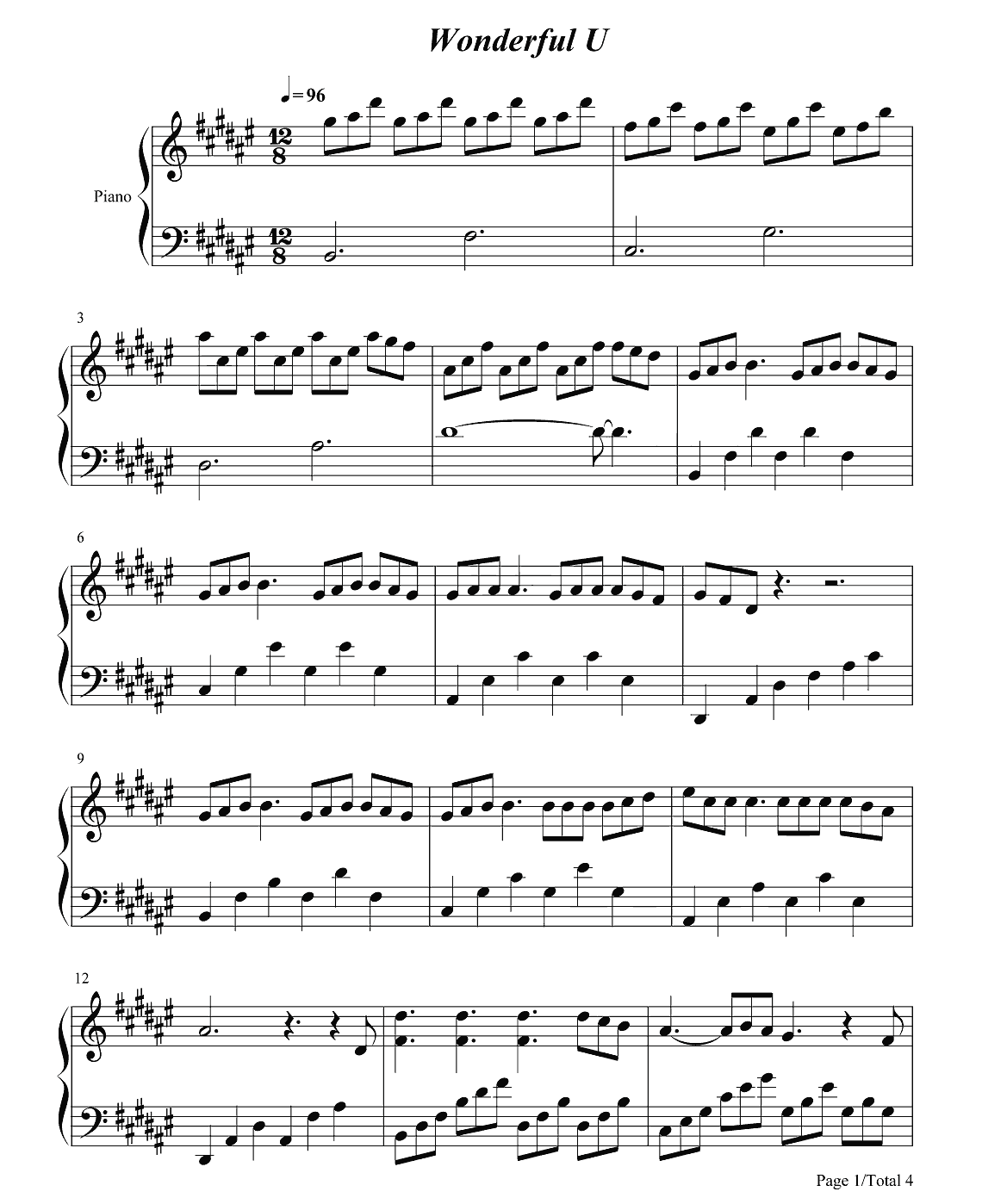 抖音AGA《WonderfulU》钢琴谱...