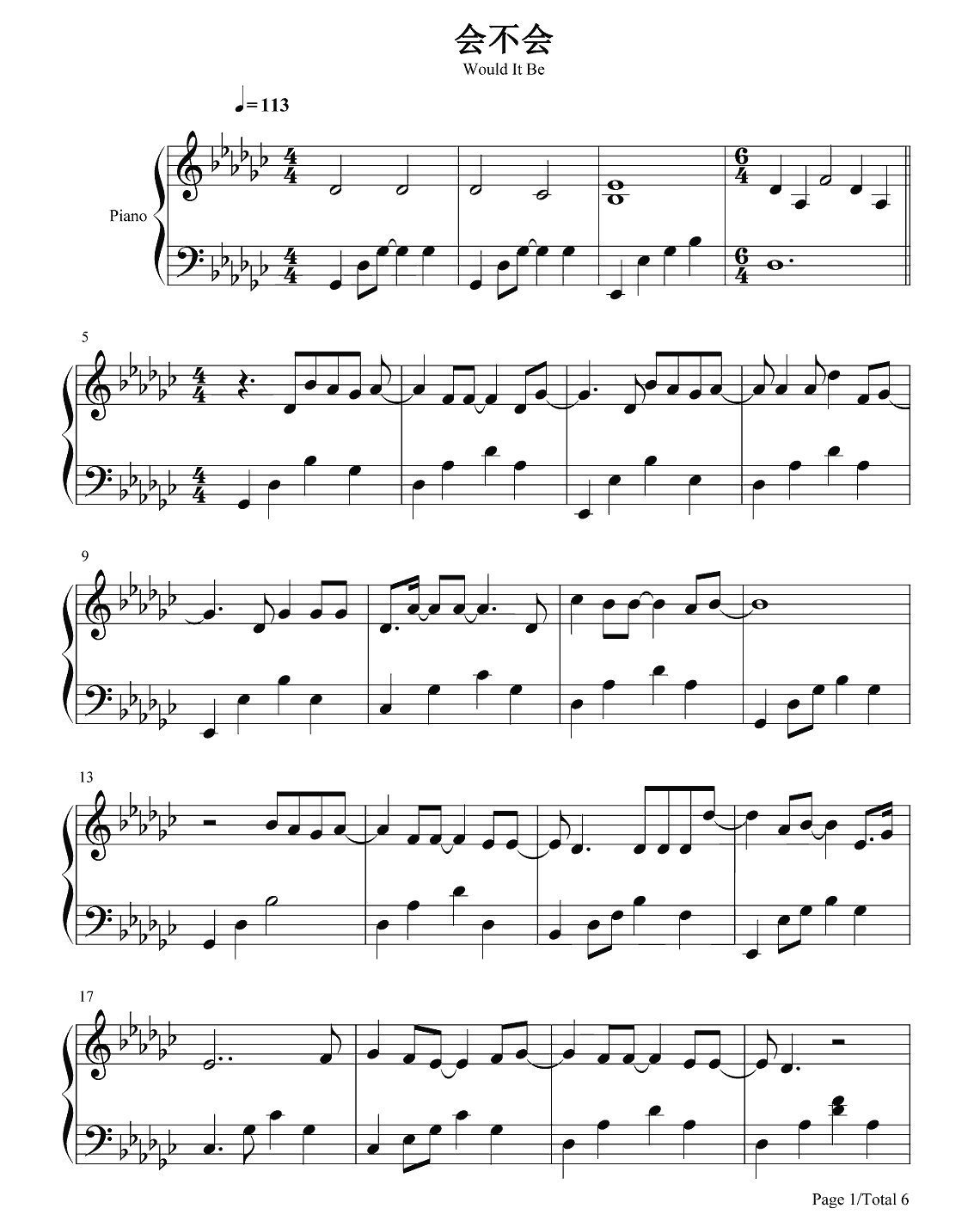 钢琴刘大壮《会不会》钢琴谱