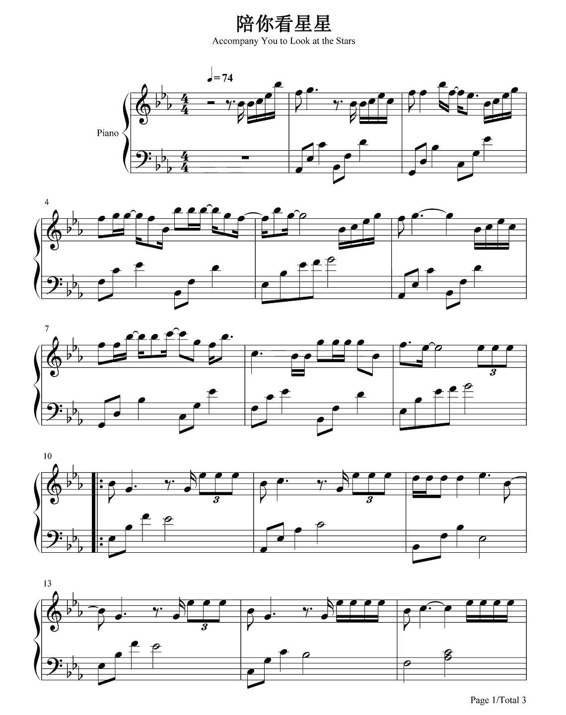 陈子晴《陪你看星星》钢琴谱简单版...