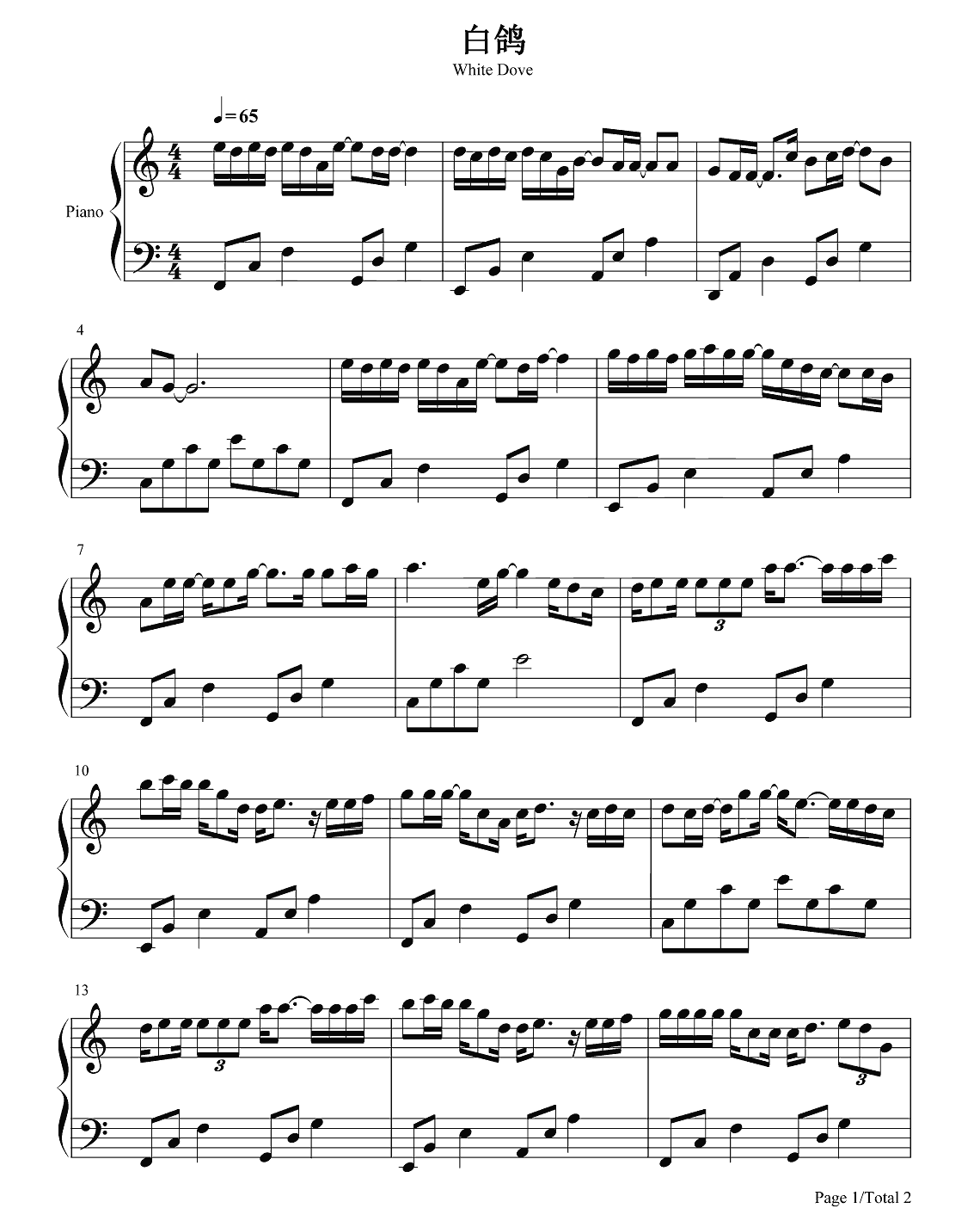 你的上好佳《白鸽》钢琴谱...
