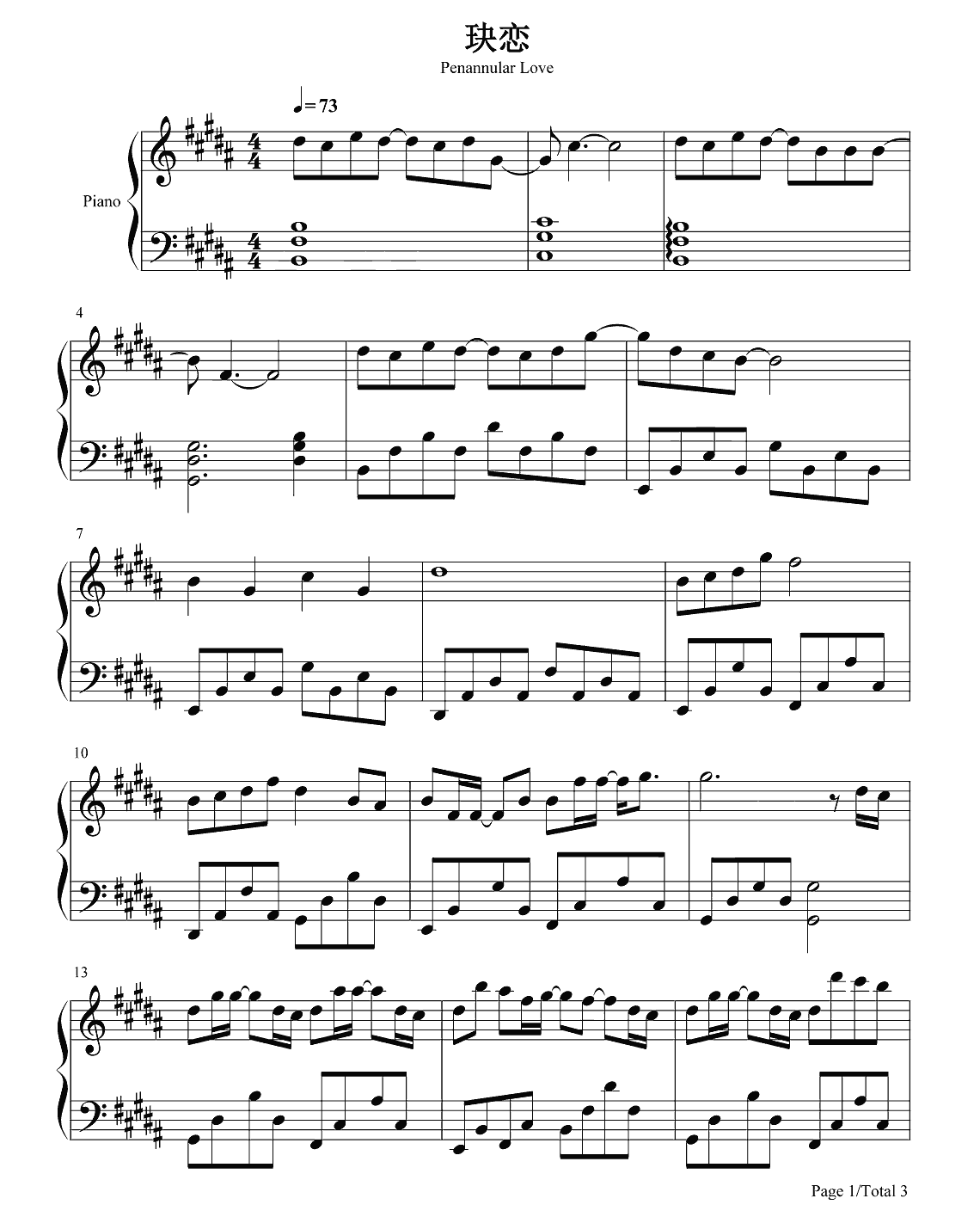 周深《玦恋》钢琴谱...