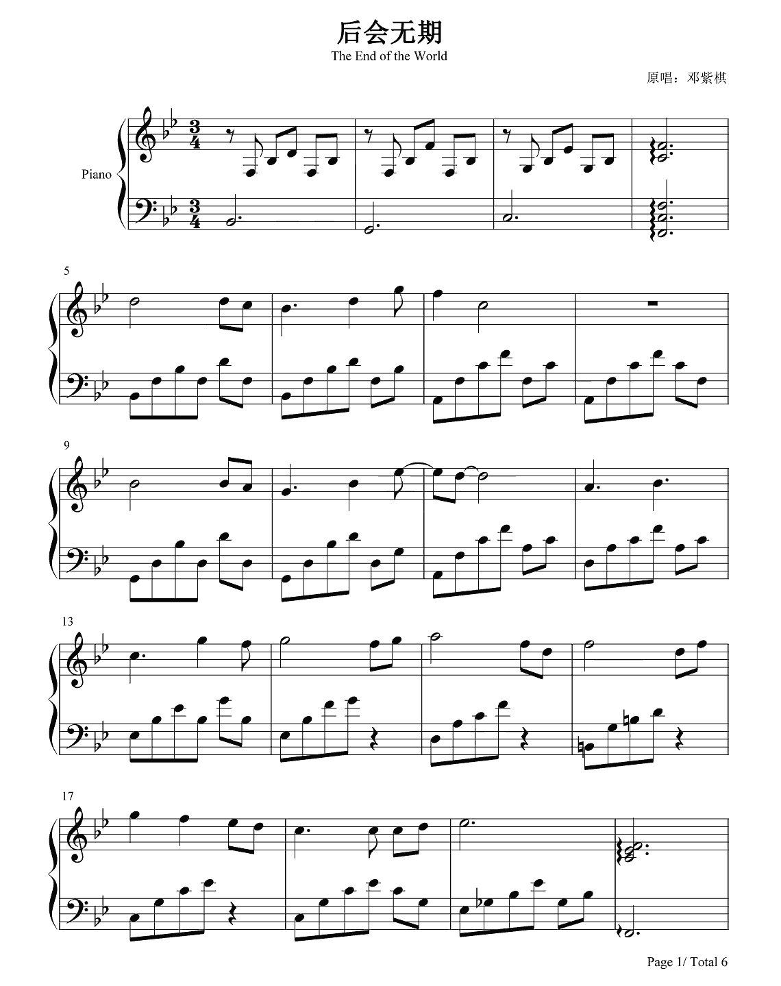 邓紫棋《后会无期》钢琴谱...