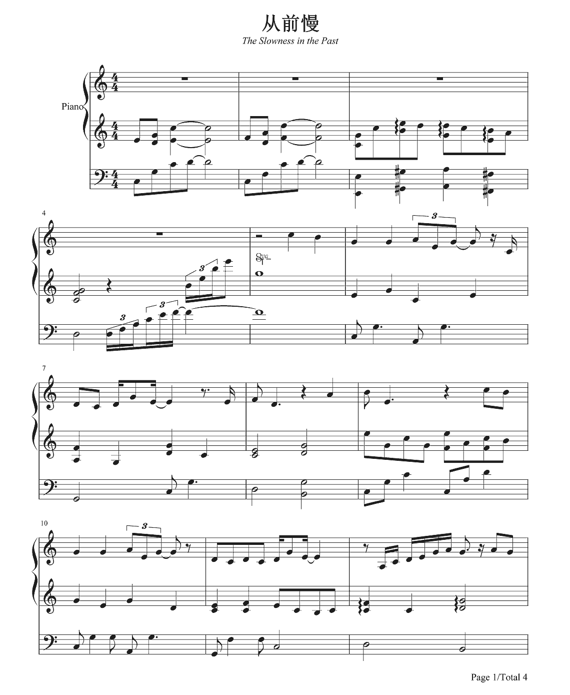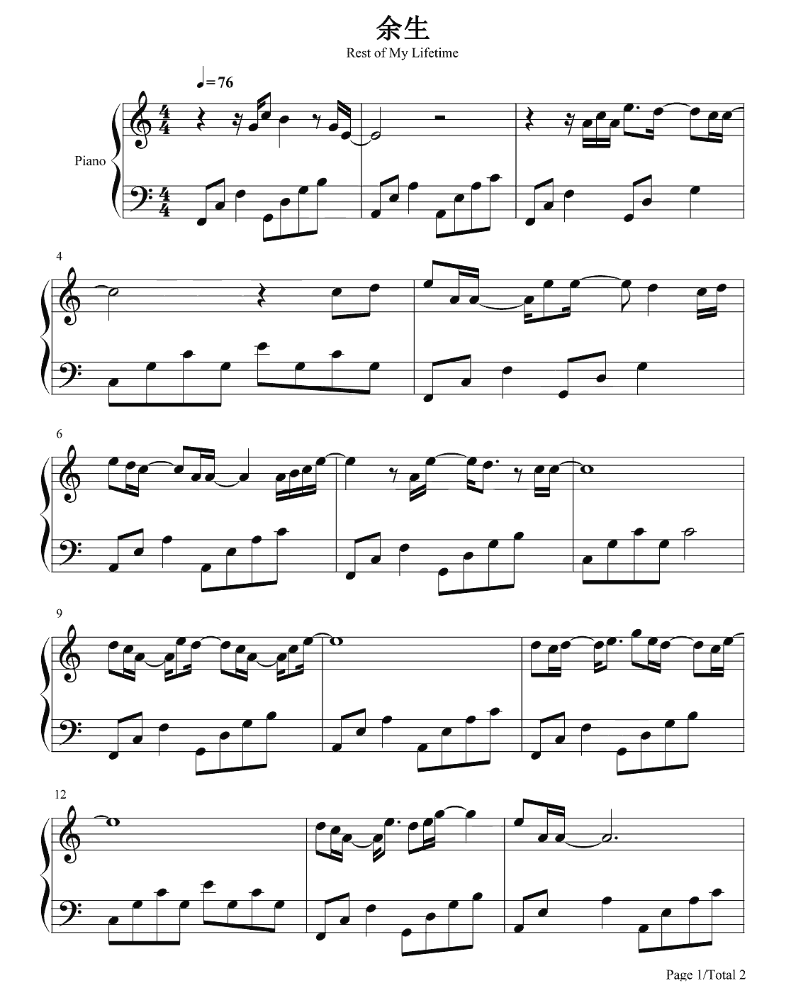 钢琴池约翰C.J《余生》钢琴谱