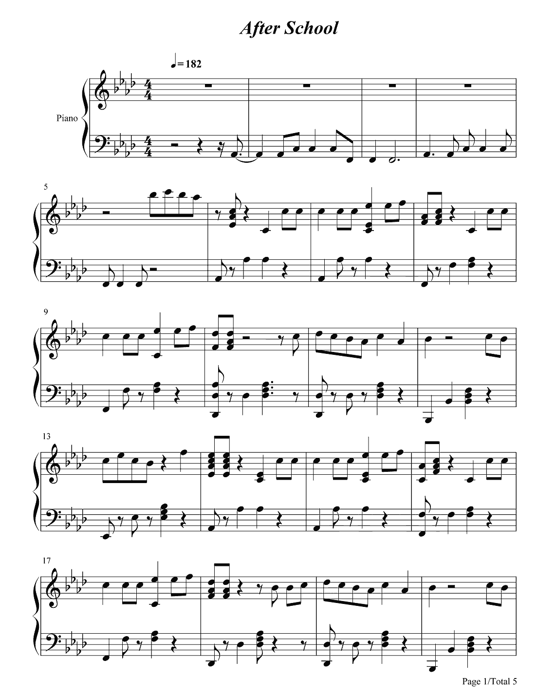 钢琴Weeekly《After School》钢琴谱