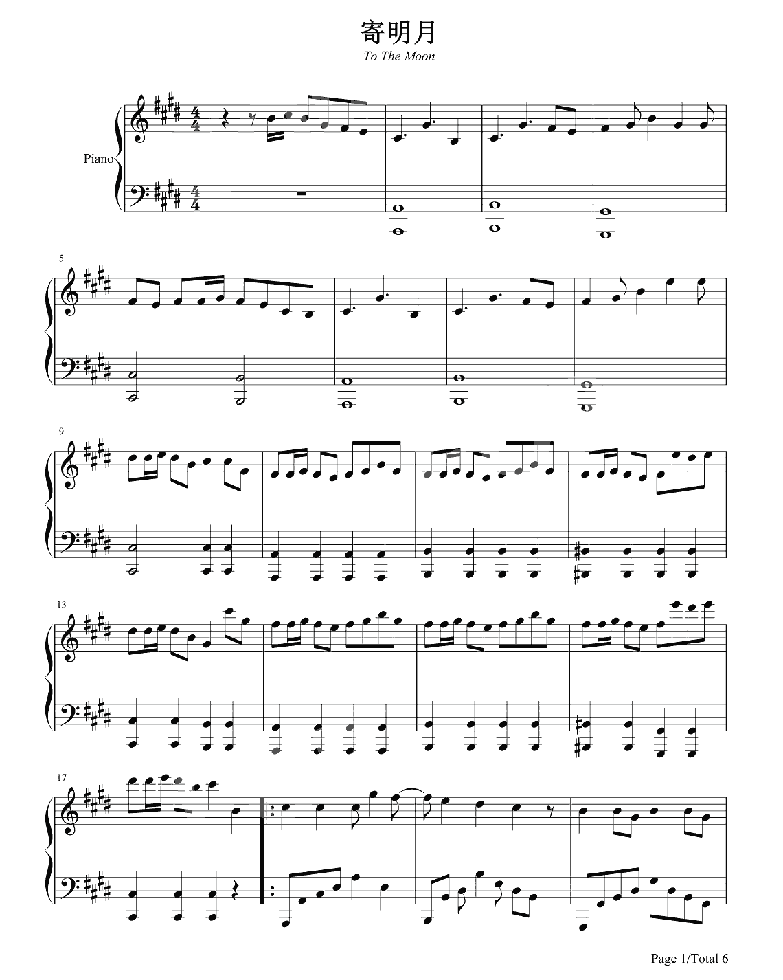 SING女团《寄明月》钢琴谱...