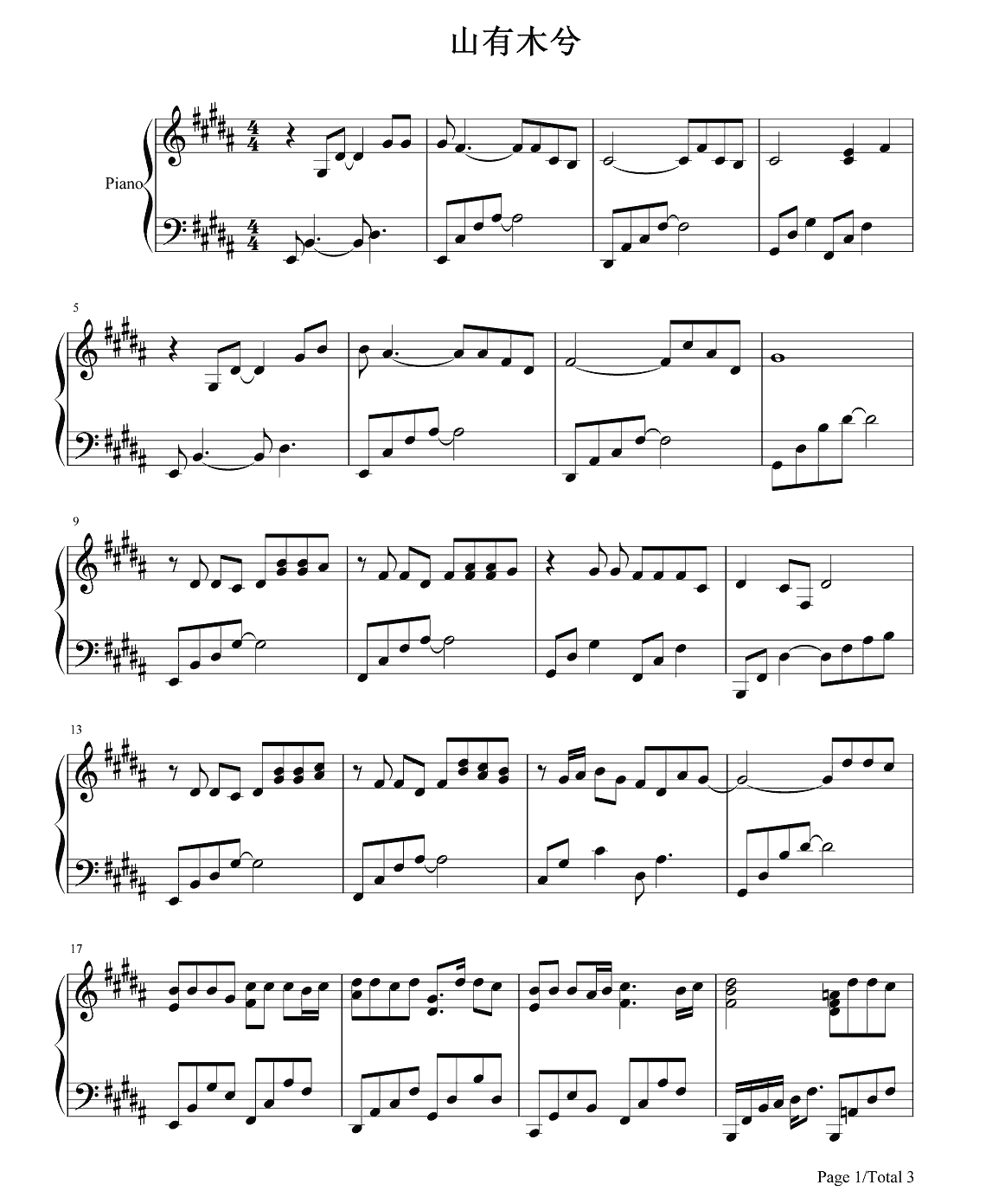 钢琴伦桑《山有木兮》钢琴谱