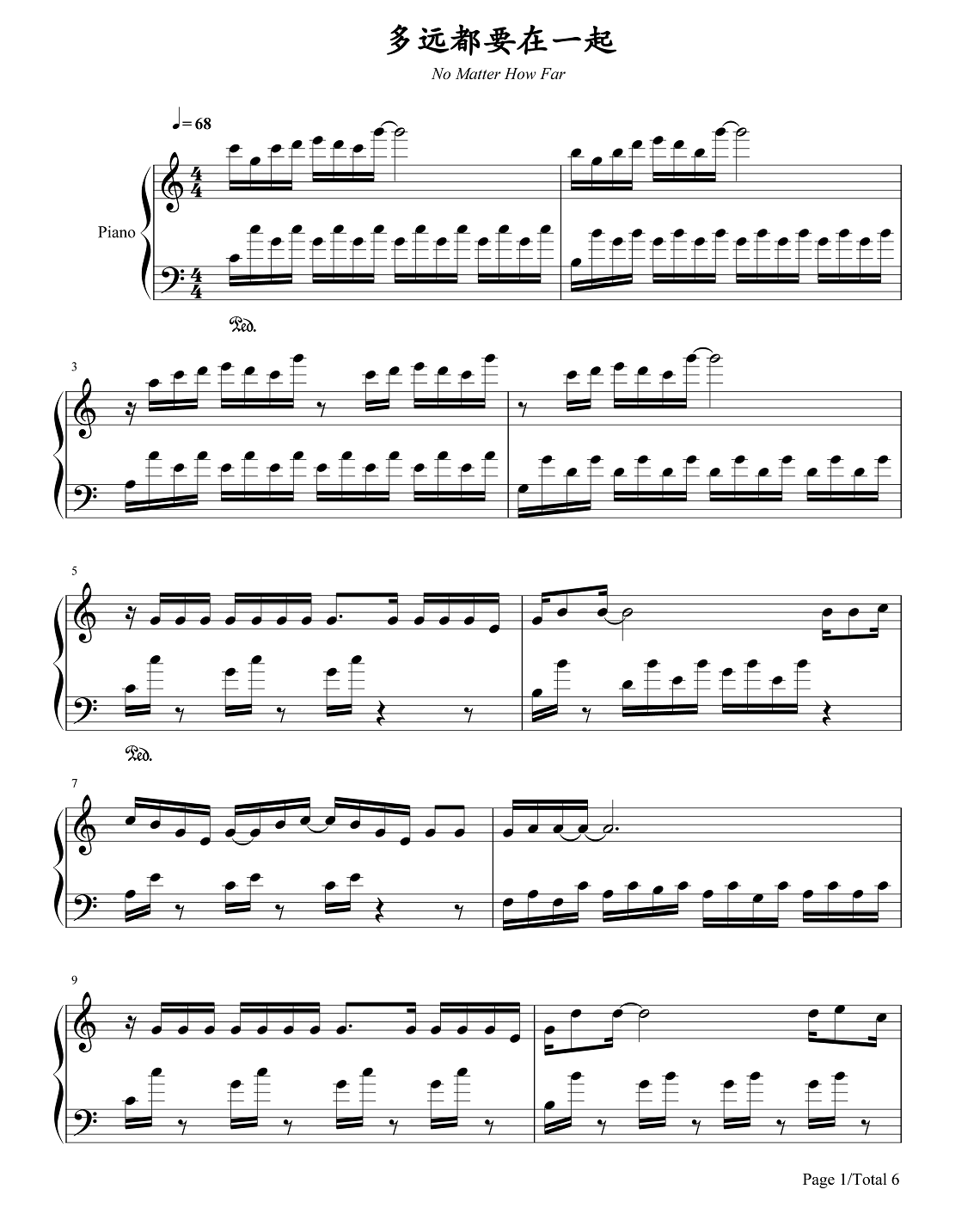邓紫棋《多远都要在一起》钢琴谱...