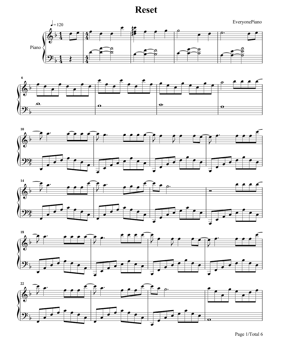 钢琴《你是谁-学校2015》插曲《Reset》钢琴谱