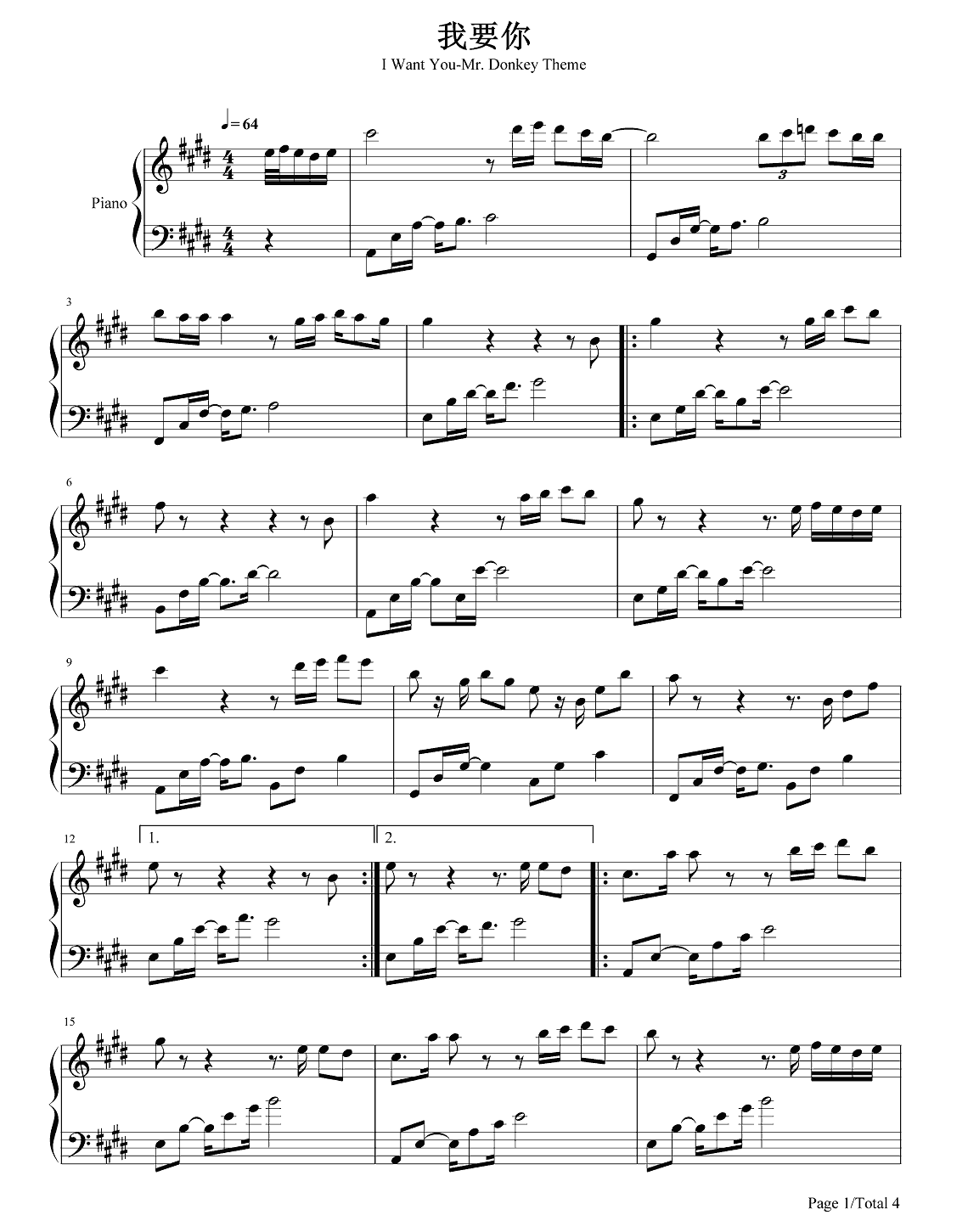 电影《驴得水》主题曲《我要你》钢琴谱...