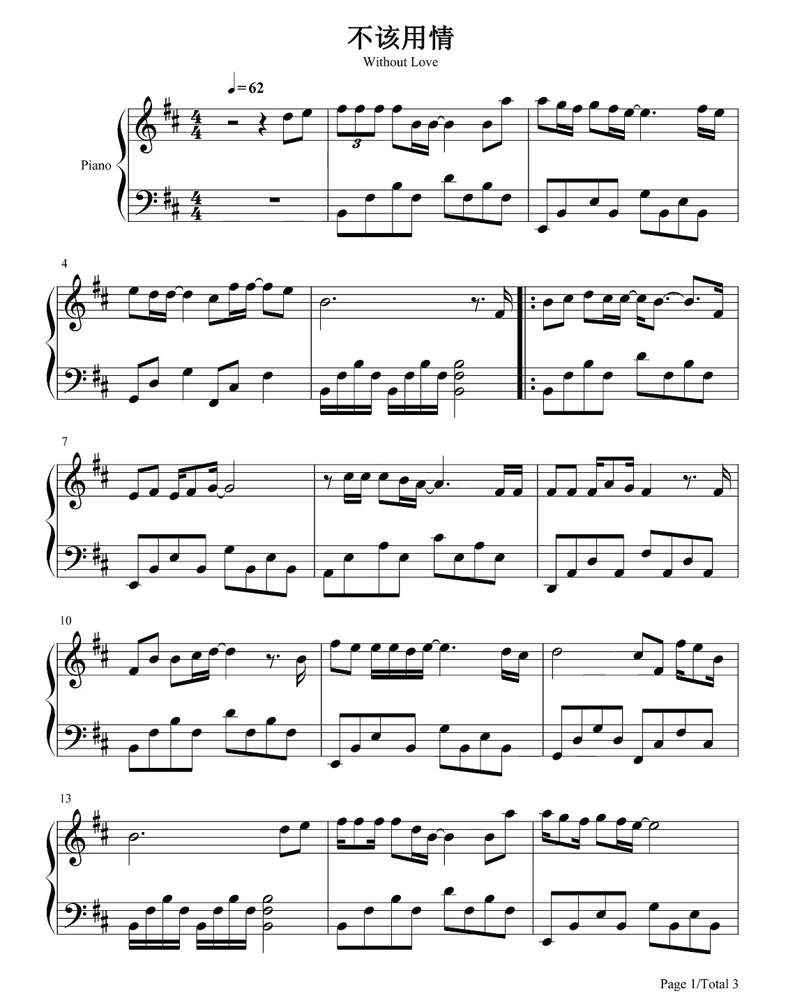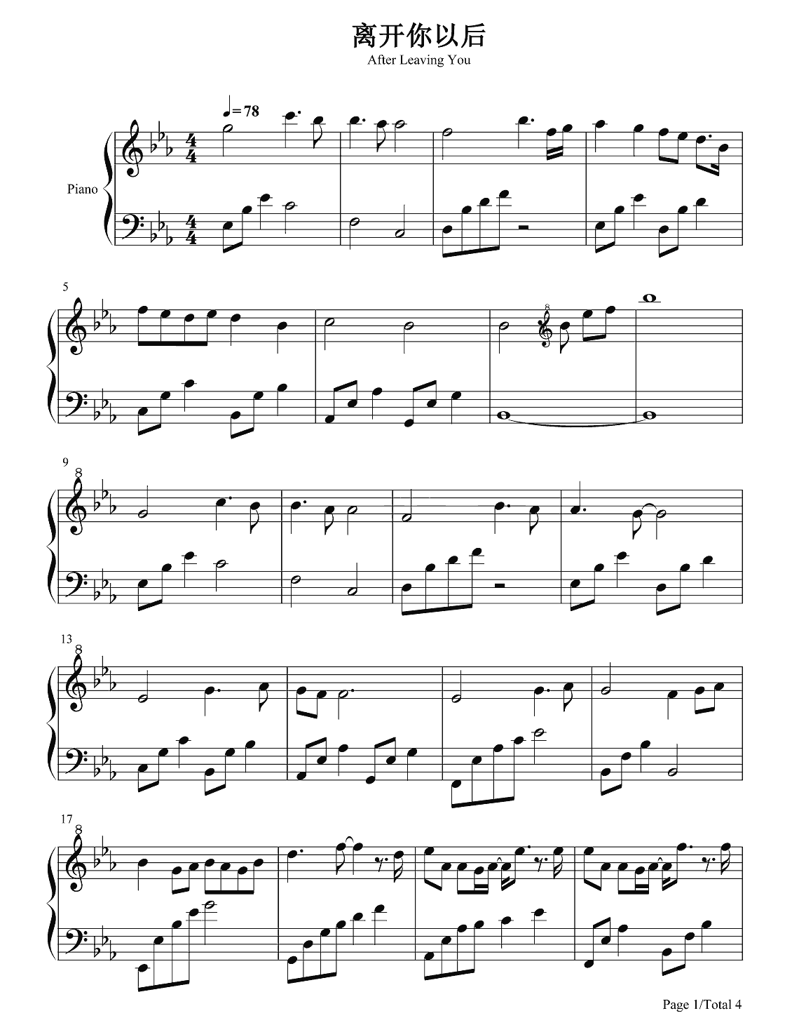钢琴电影《你的婚礼》插曲《离开你以后》钢琴谱