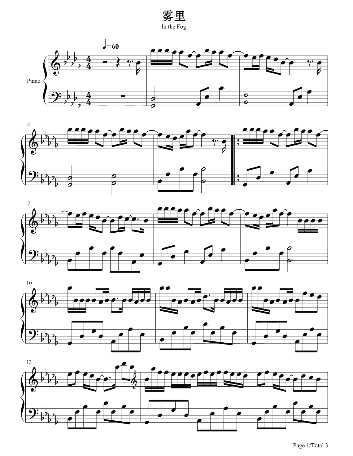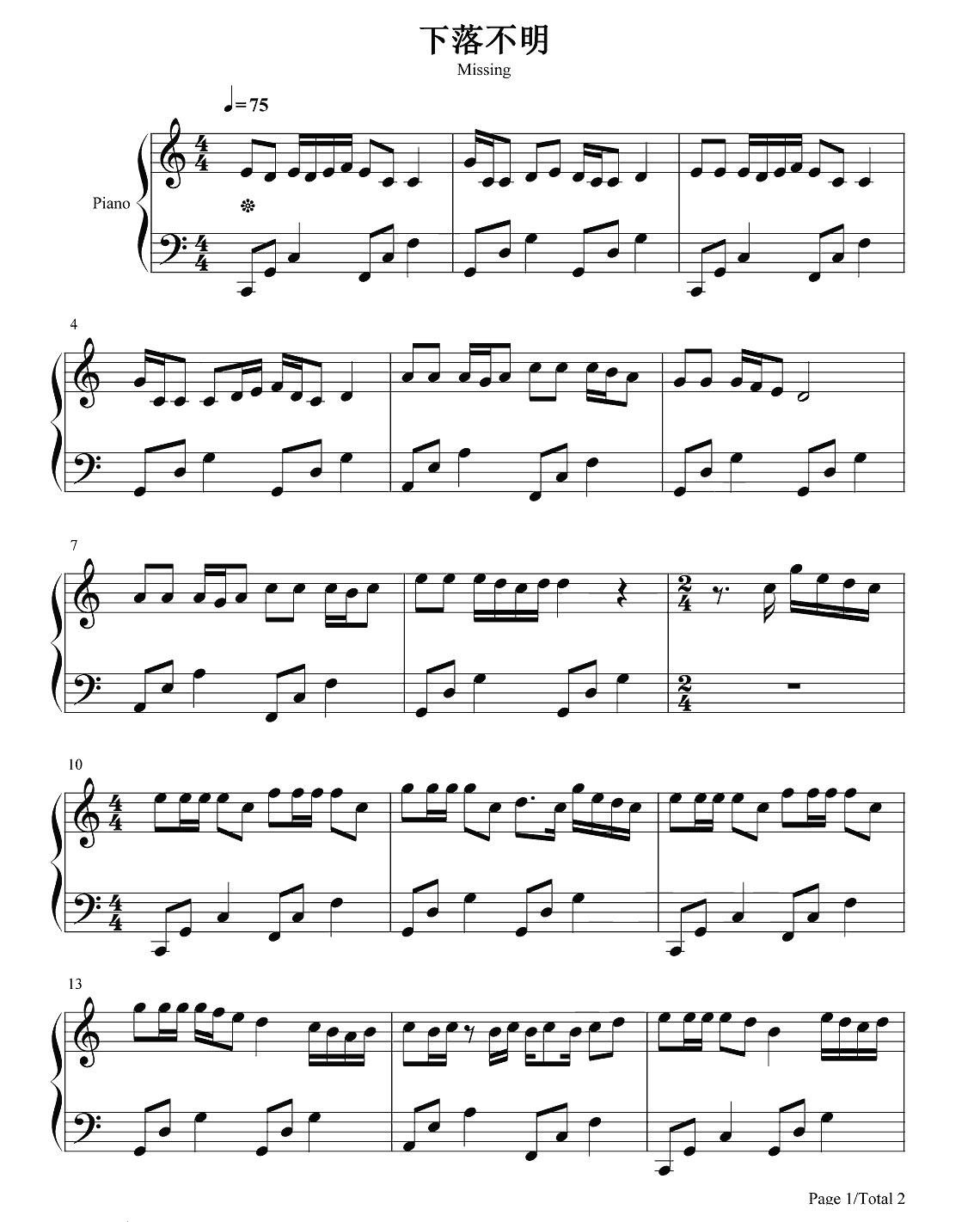 钢琴《司藤》插曲《下落不明》钢琴五线谱