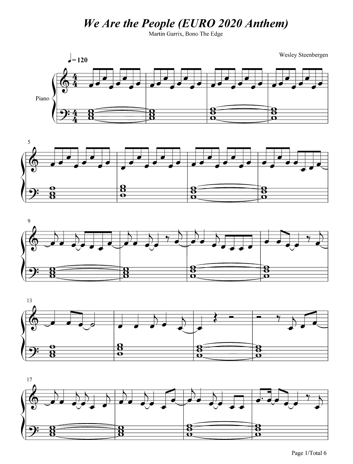 2020年欧洲杯主题曲《WeArethePeople》钢琴谱...