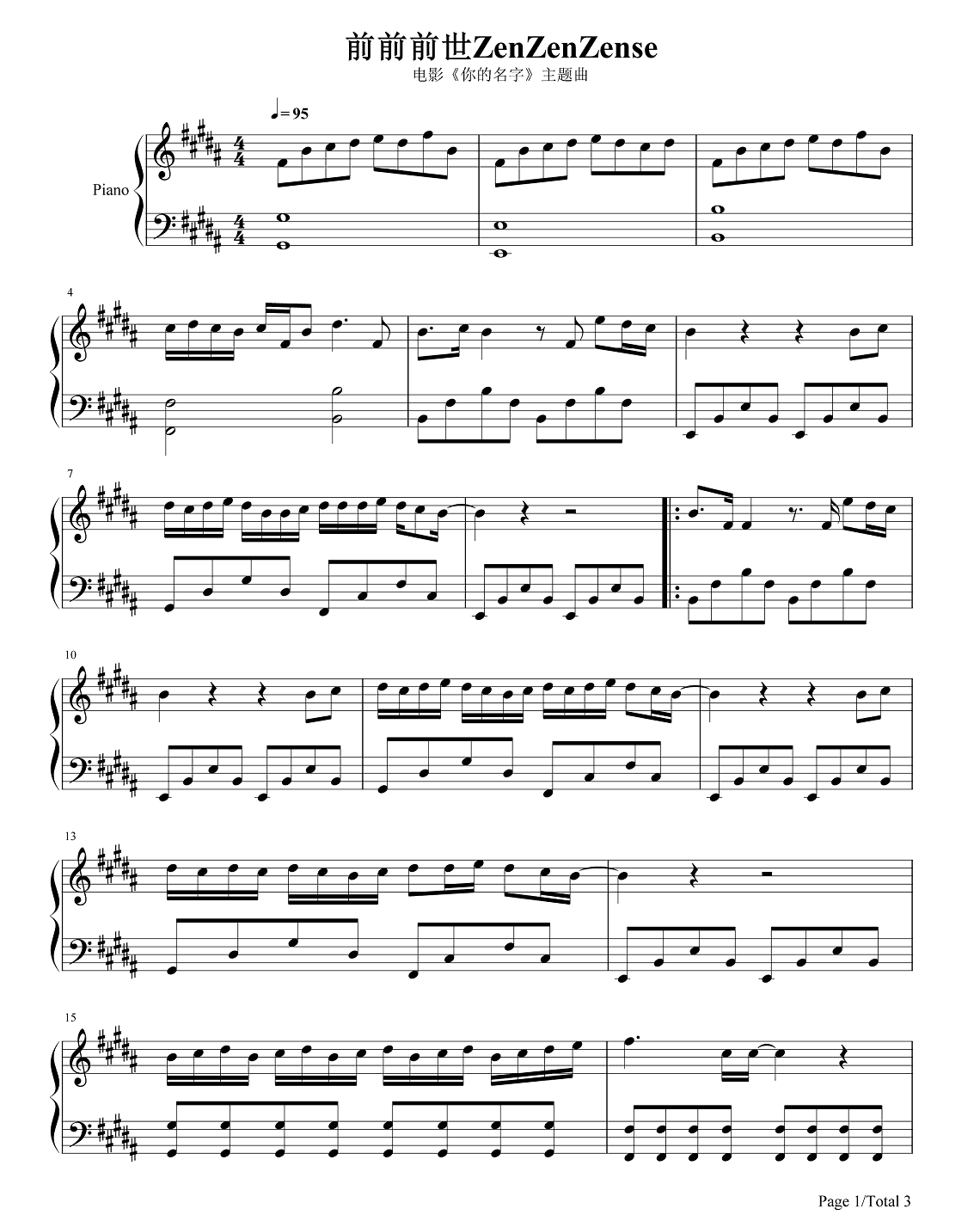 电影《你的名字》主题曲《前前前世》钢琴谱...