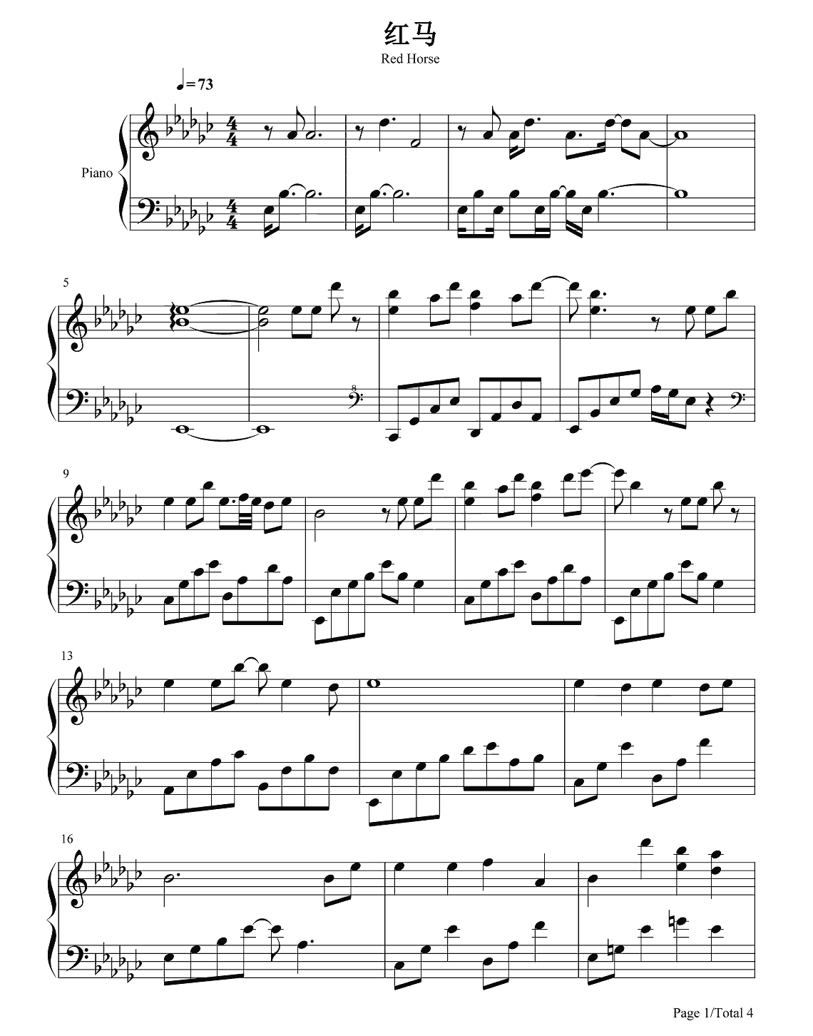 翁梓铭《苦尽甘来》钢琴五线谱...