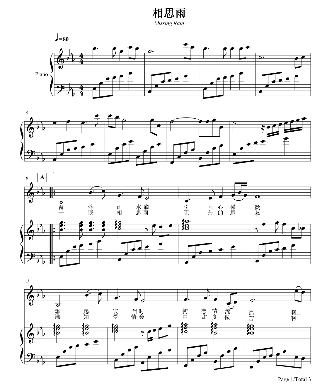 钢琴郭信明《相思雨》钢琴谱 高清版