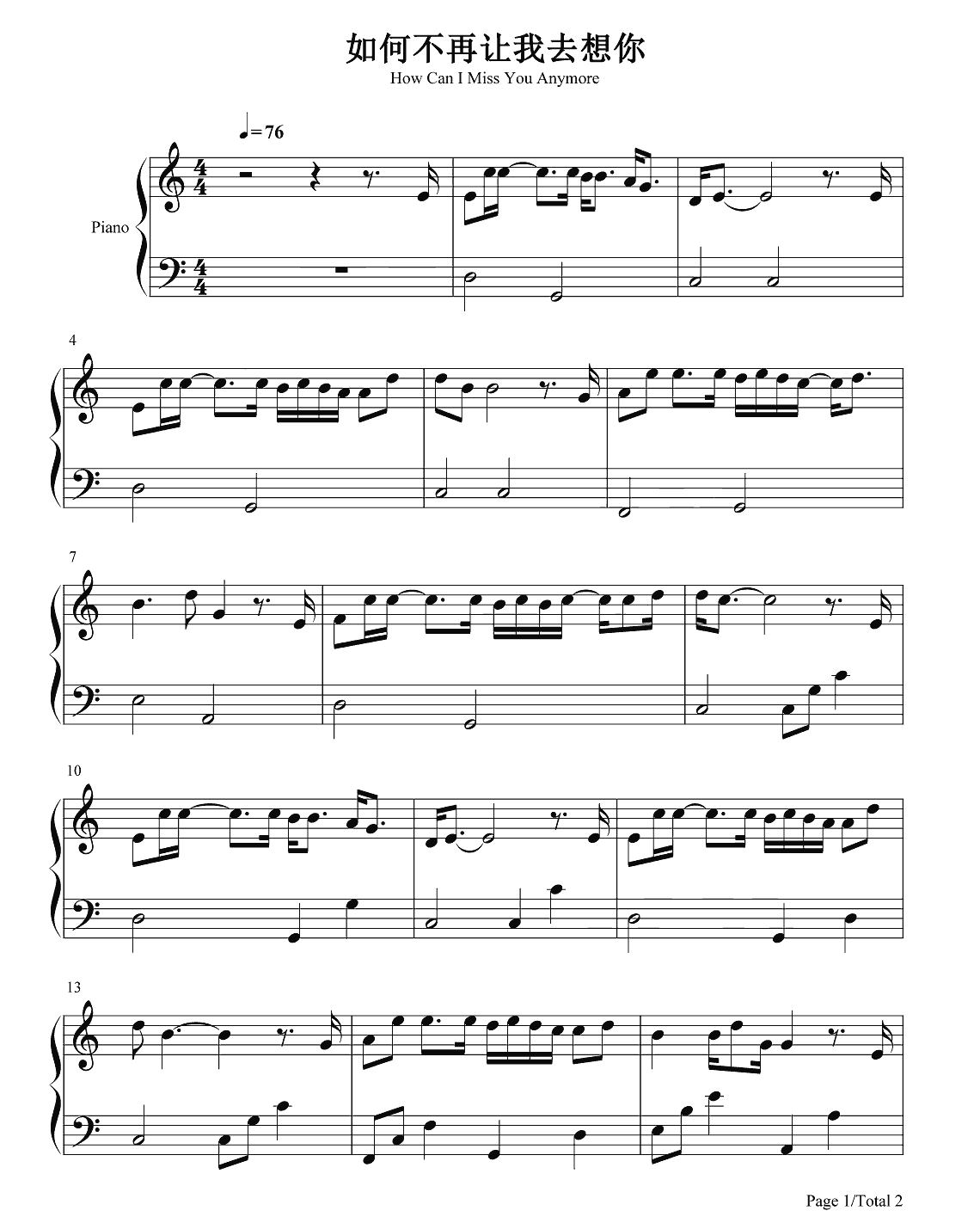 钢琴井迪儿《如何不再让我去想你》钢琴谱
