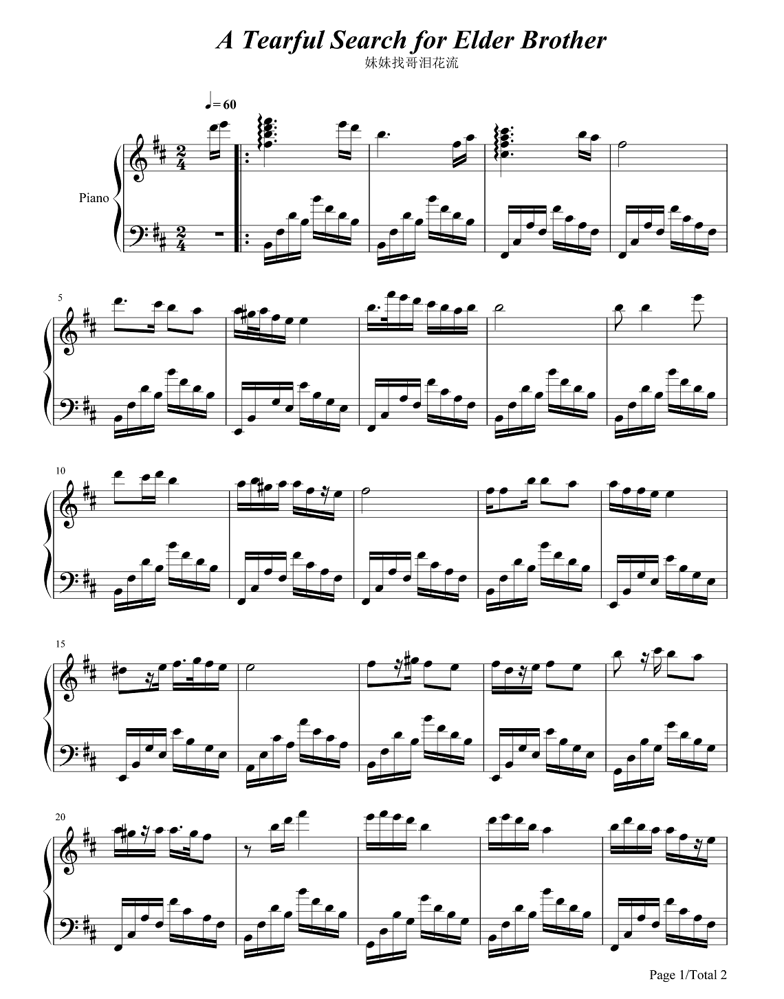 钢琴李谷一《妹妹找哥泪花流》钢琴谱