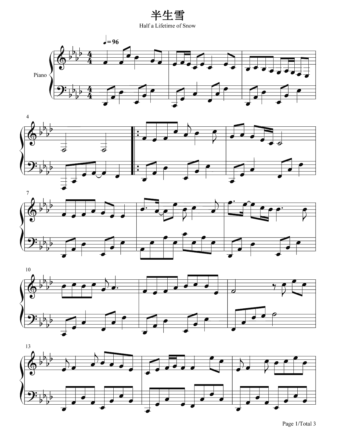 钢琴是七叔呢《半生雪》钢琴谱 高清版