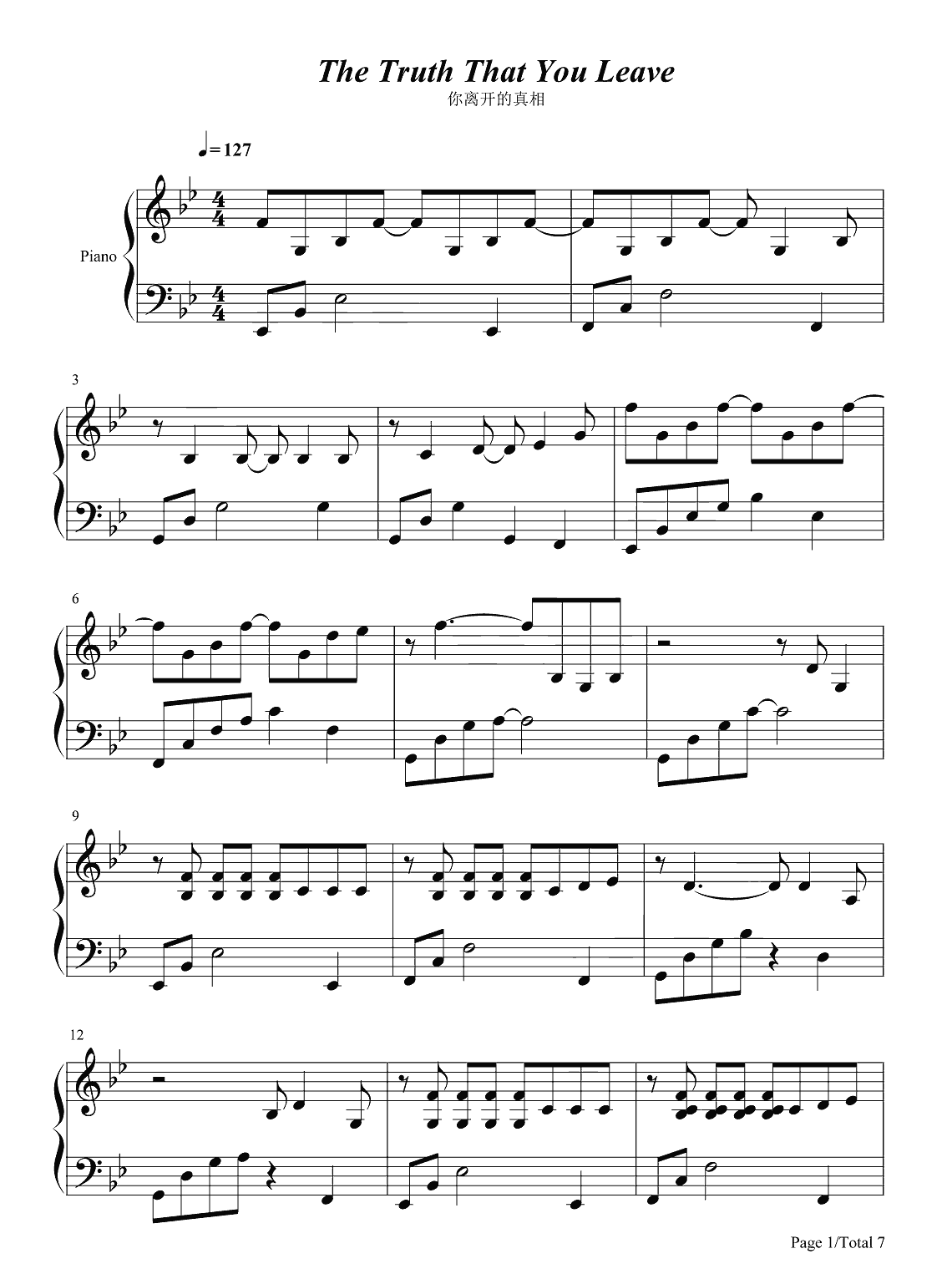 Pianoboy高志豪《你离开的真相》钢琴谱...