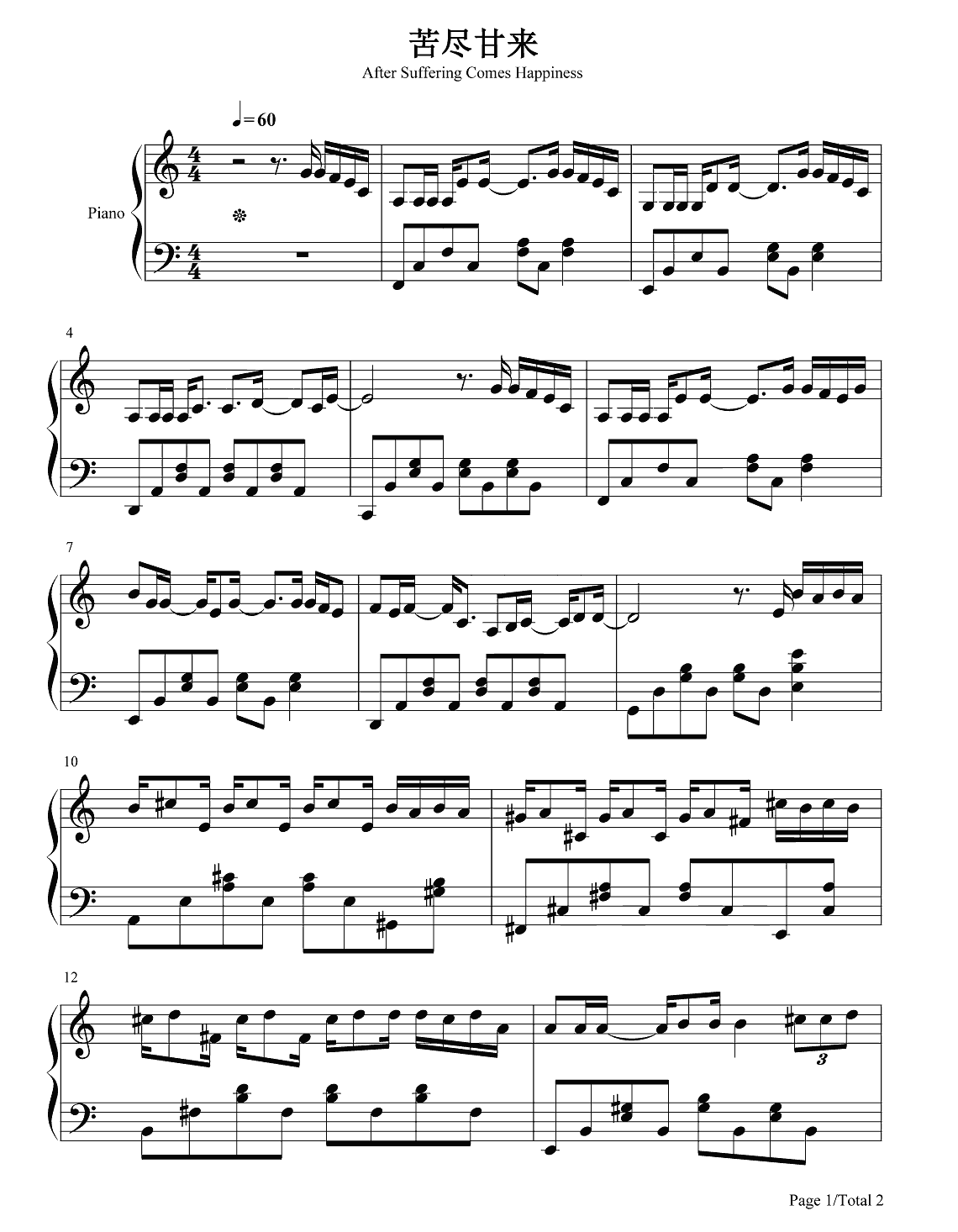 钢琴翁梓铭《苦尽甘来》钢琴五线谱
