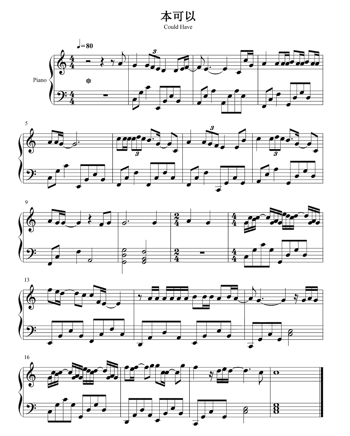 钢琴刘宇宁《司藤》主题曲《本可以》钢琴谱