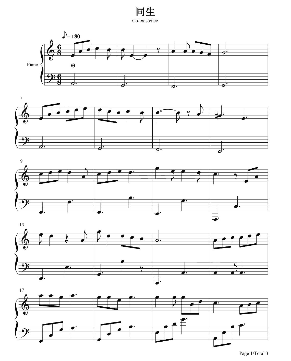 刘宇宁《南烟斋笔录》插曲《同生》钢琴谱...