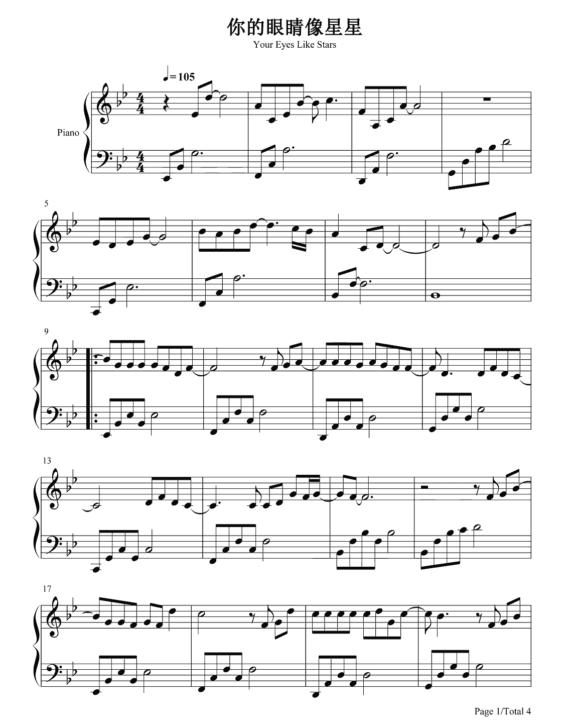 钢琴郭正正、Old crab《你的眼睛像星星》钢琴谱