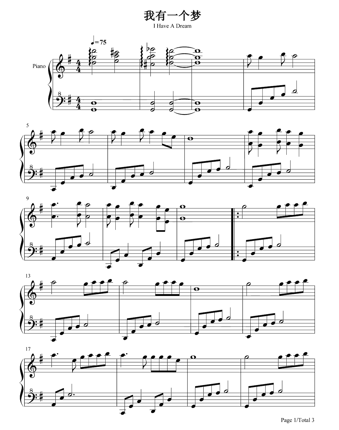 袁隆平作词《我有一个梦》钢琴谱...