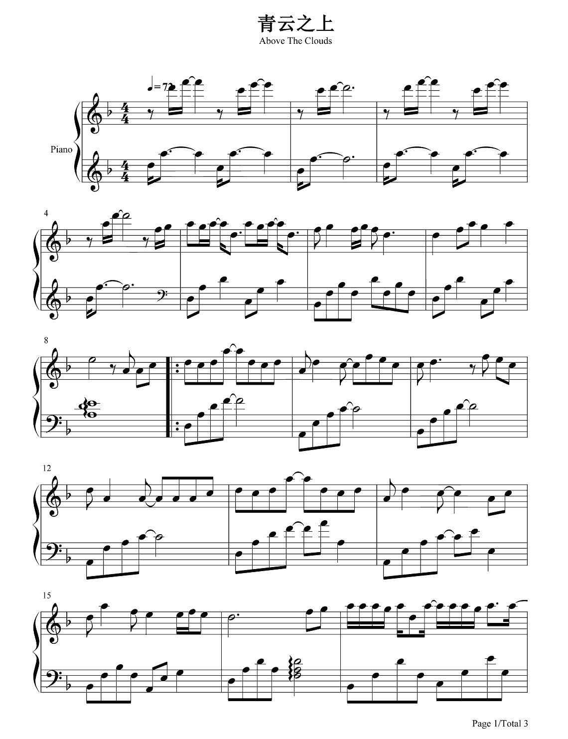 钢琴《乾清宫》主题曲《青云之上》钢琴谱