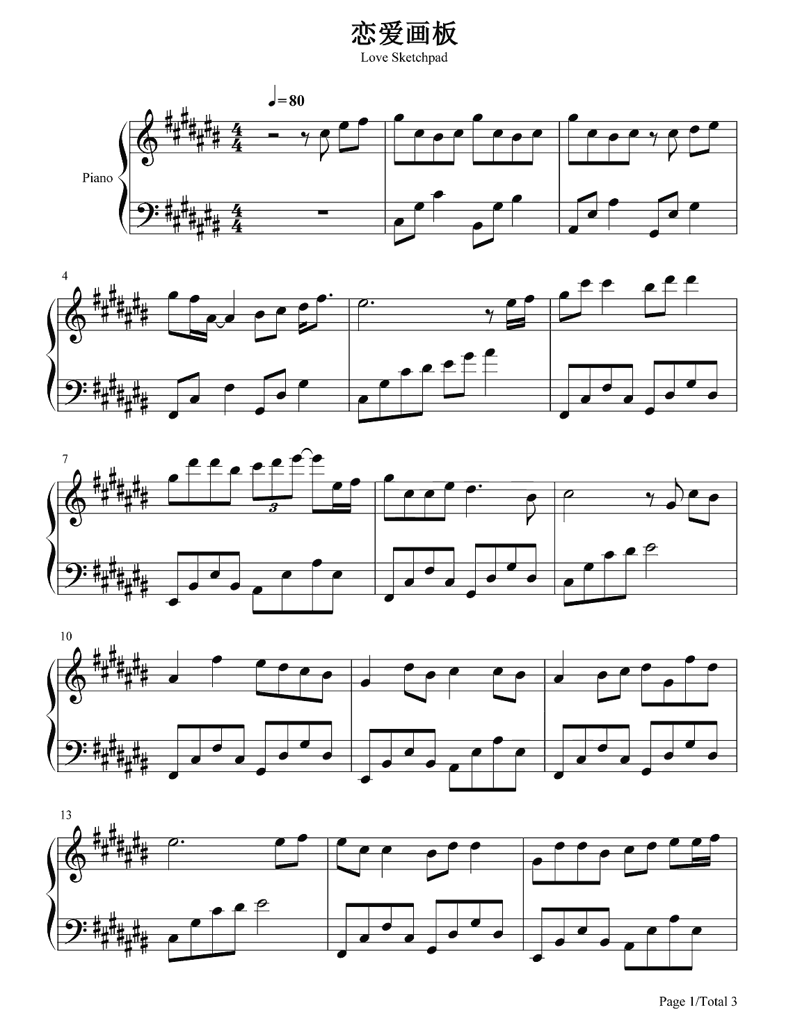 钢琴锦零《恋爱画板》钢琴谱 高清版
