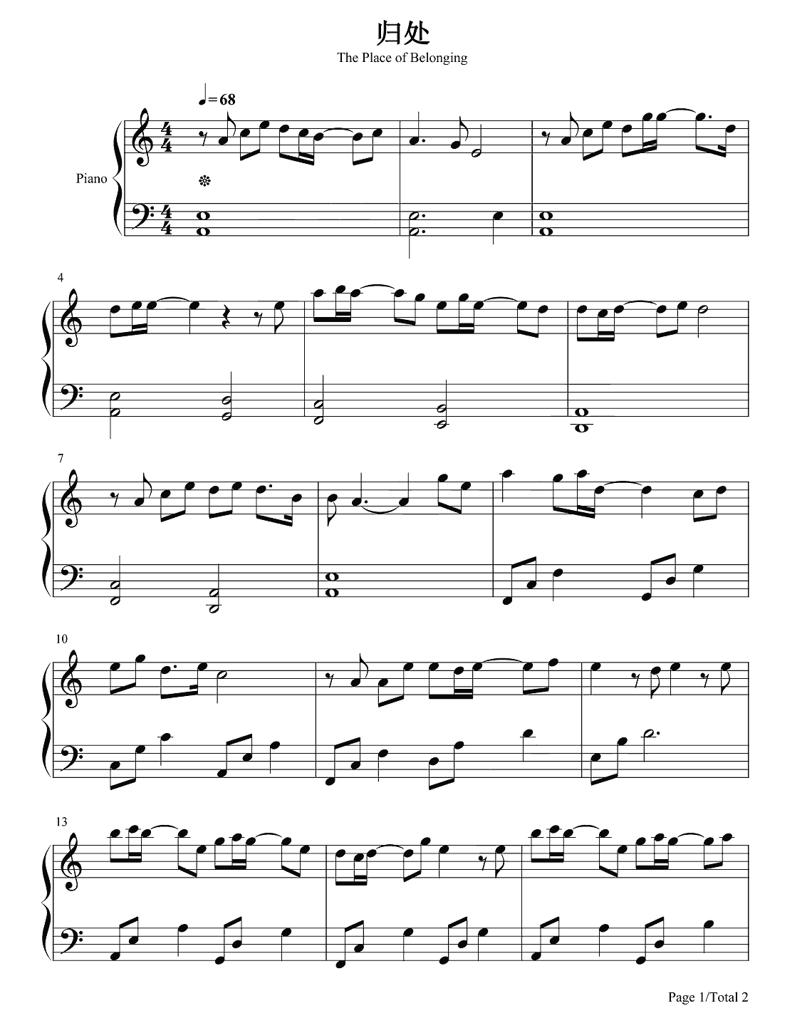 钢琴《侍神令》主题曲《归处》钢琴谱