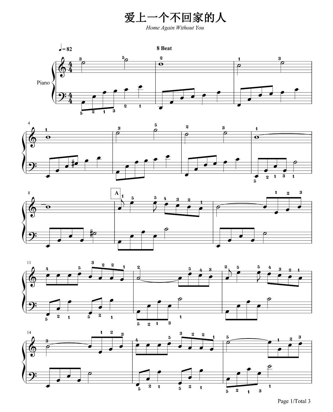 钢琴林忆莲《爱上一个不回家的人》钢琴谱