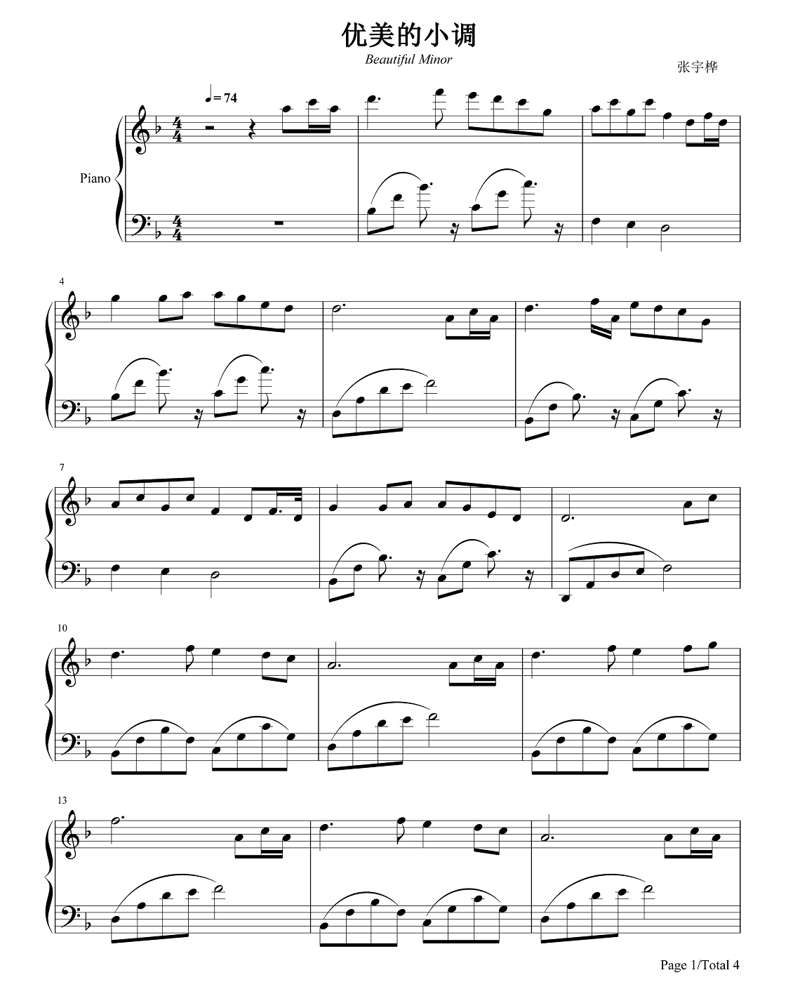钢琴张宇桦《优美的小调》钢琴谱