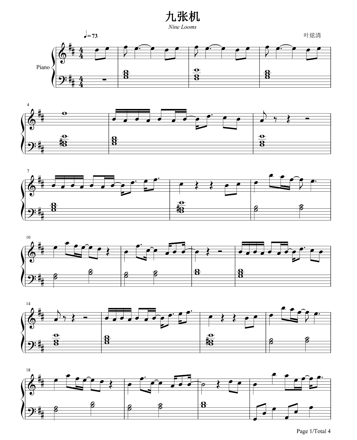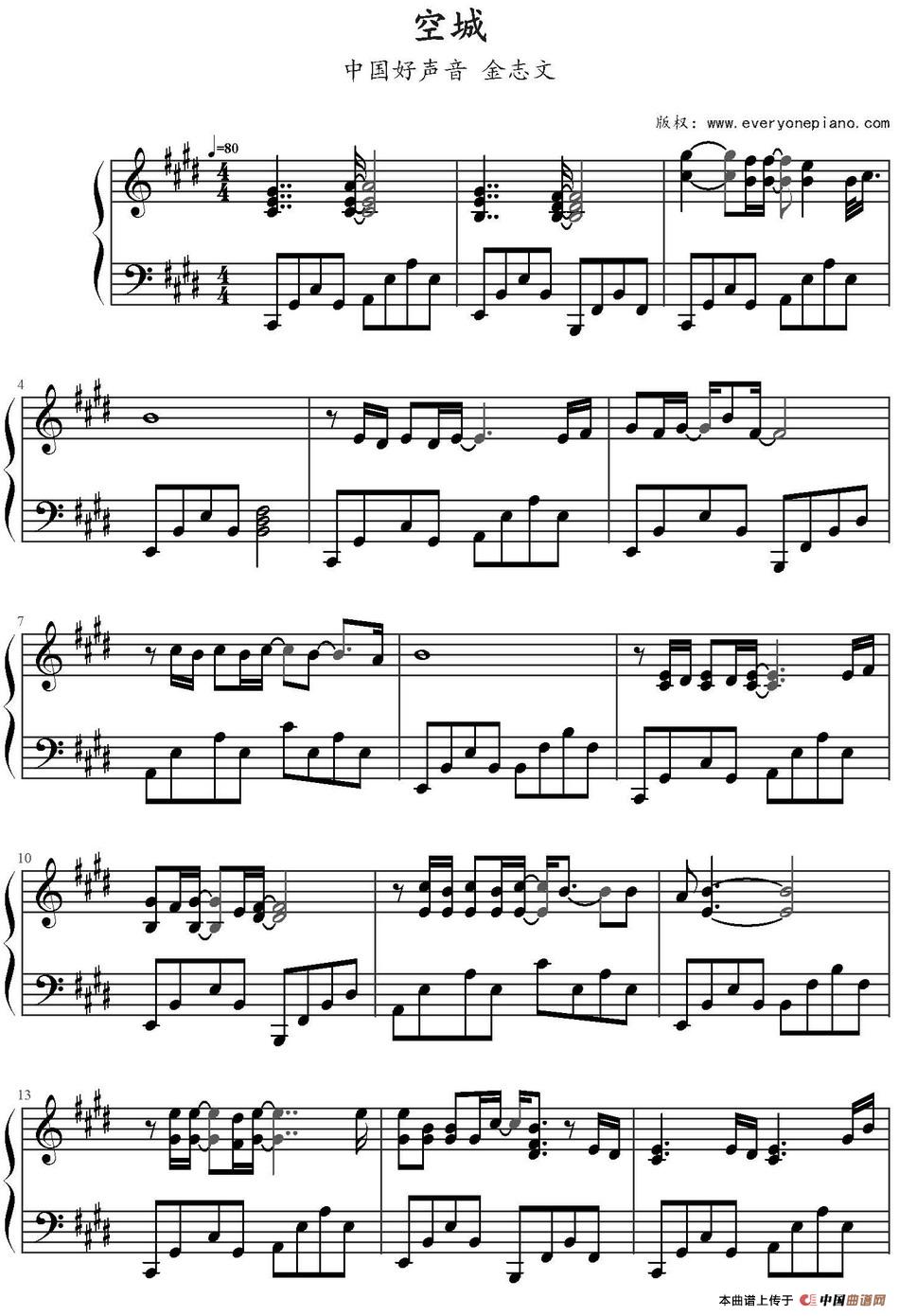 钢琴金志文《空城》钢琴谱