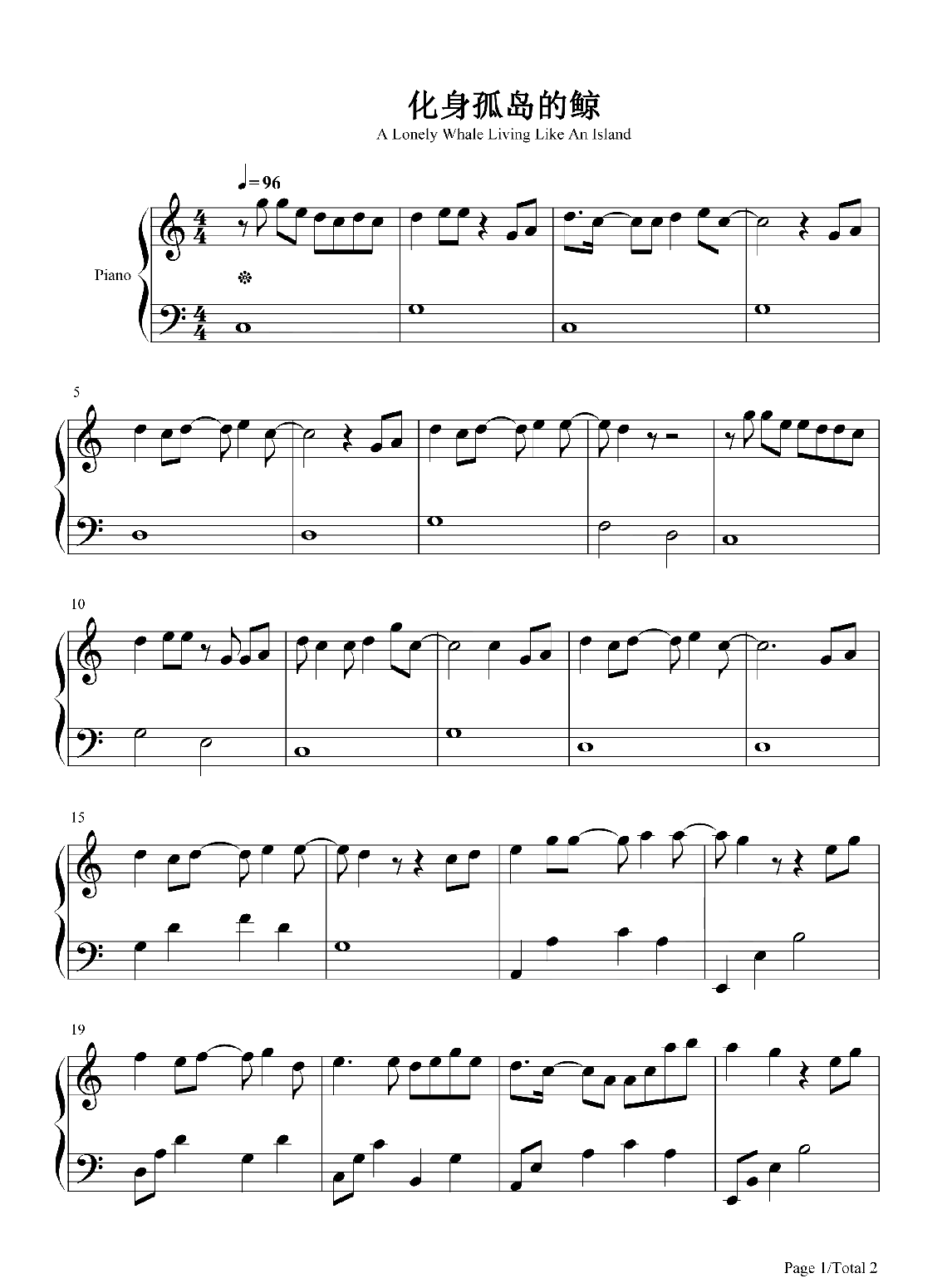 钢琴徐浩《化身孤岛的鲸》钢琴谱