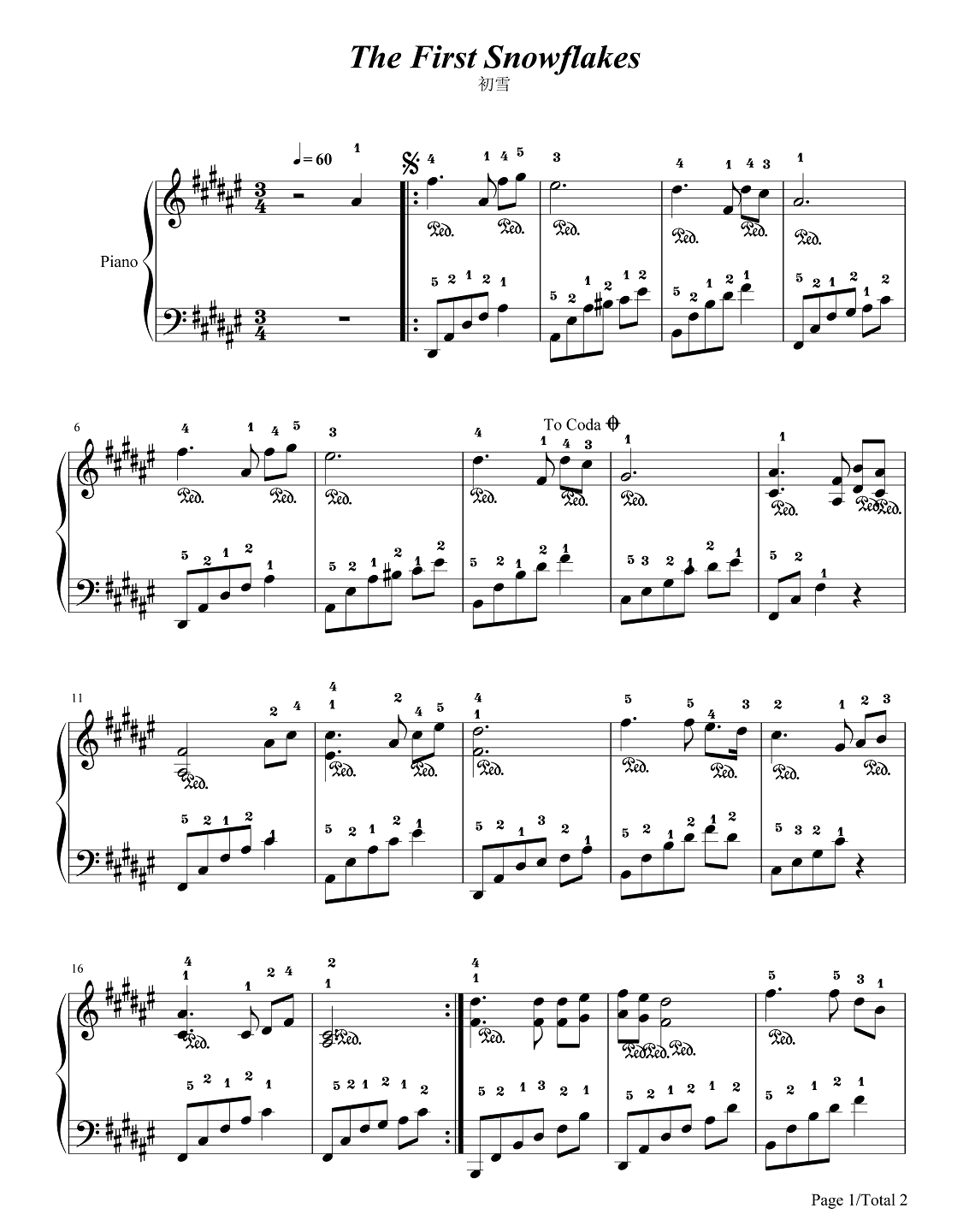 钢琴班得瑞《初雪》钢琴谱