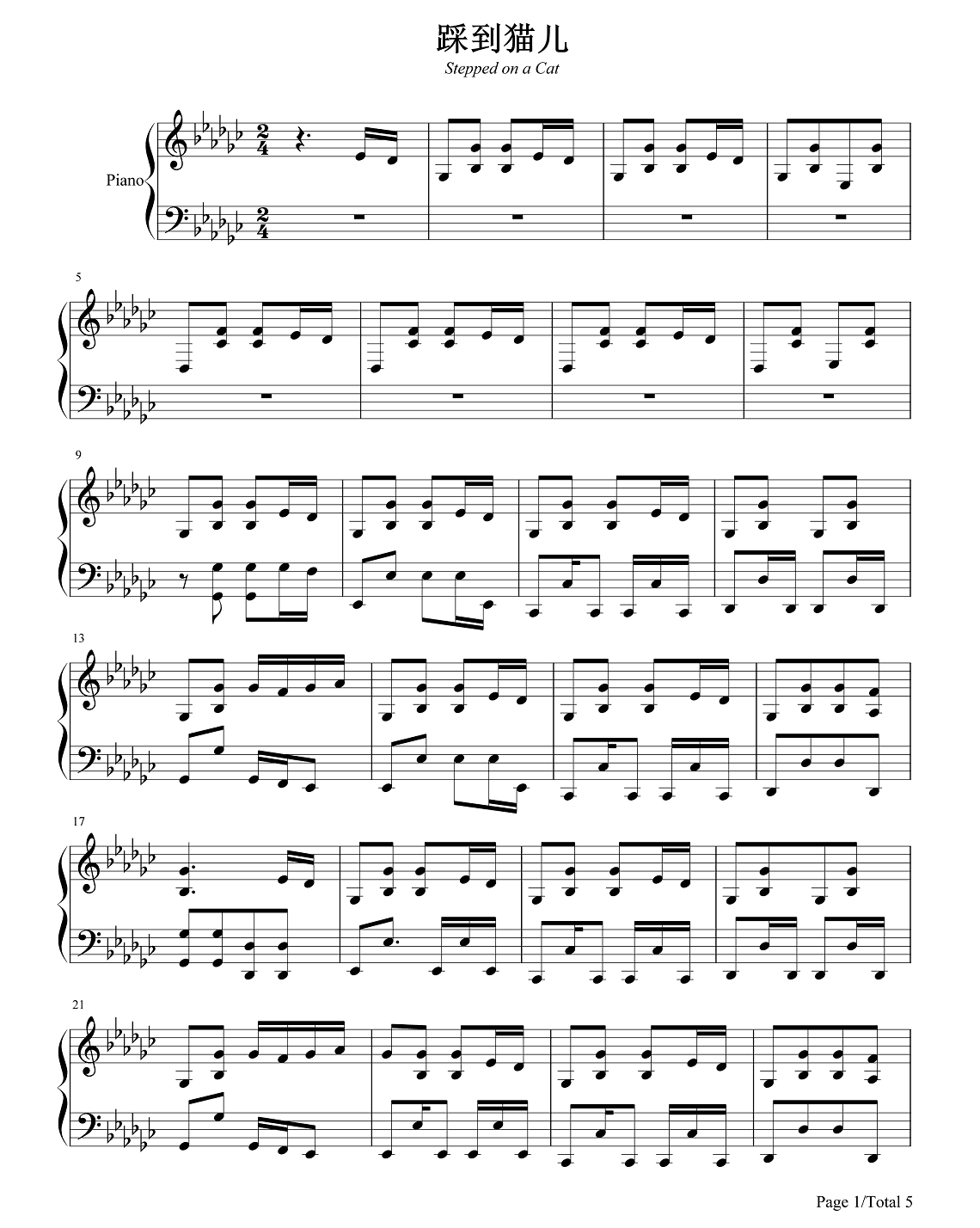 拜厄《踩到猫儿》钢琴谱...