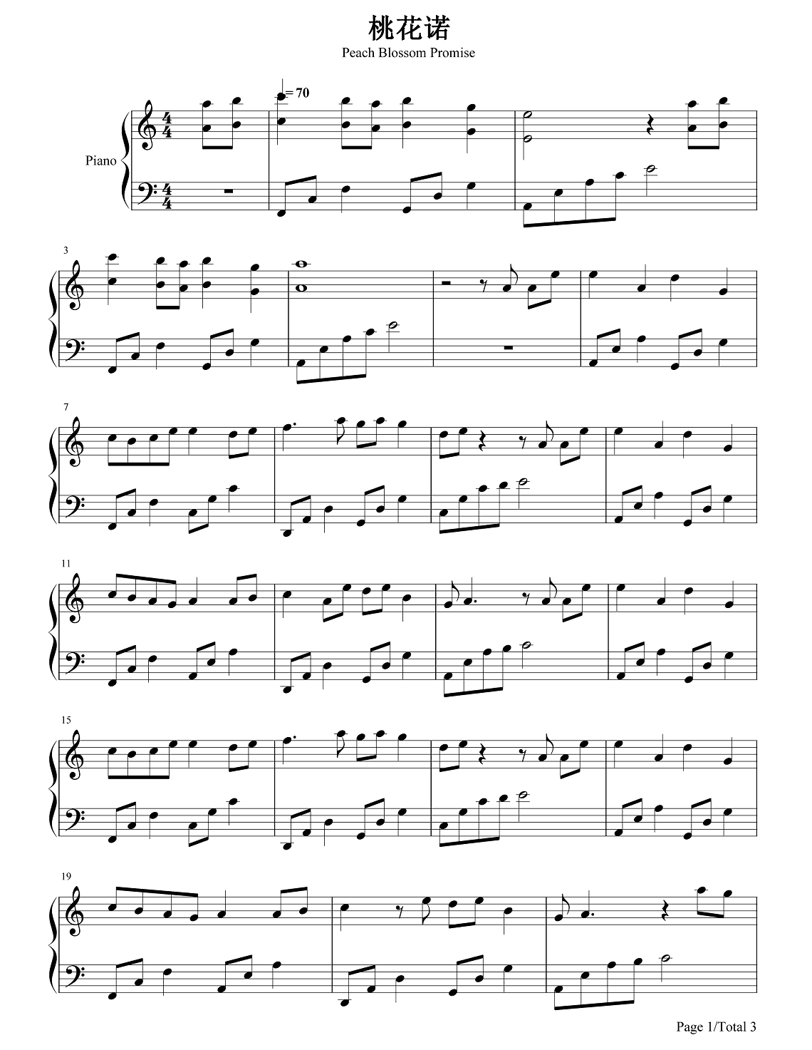 邓紫棋《桃花诺》钢琴五线谱...