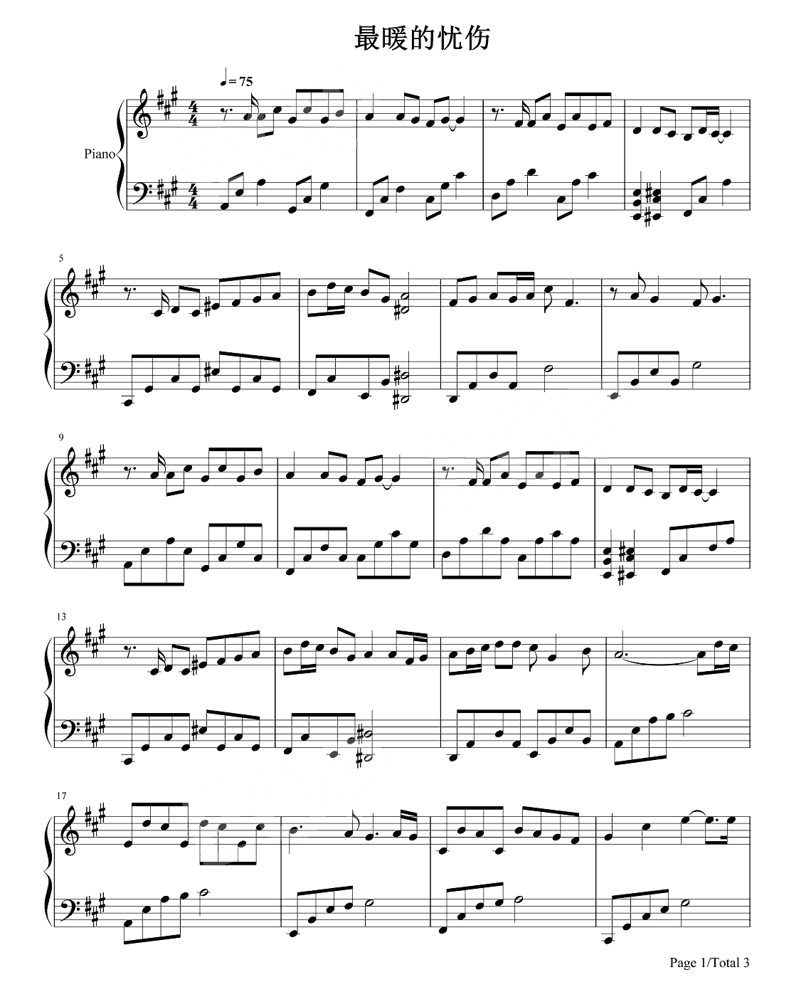 田馥甄《最暖的忧伤》钢琴谱...