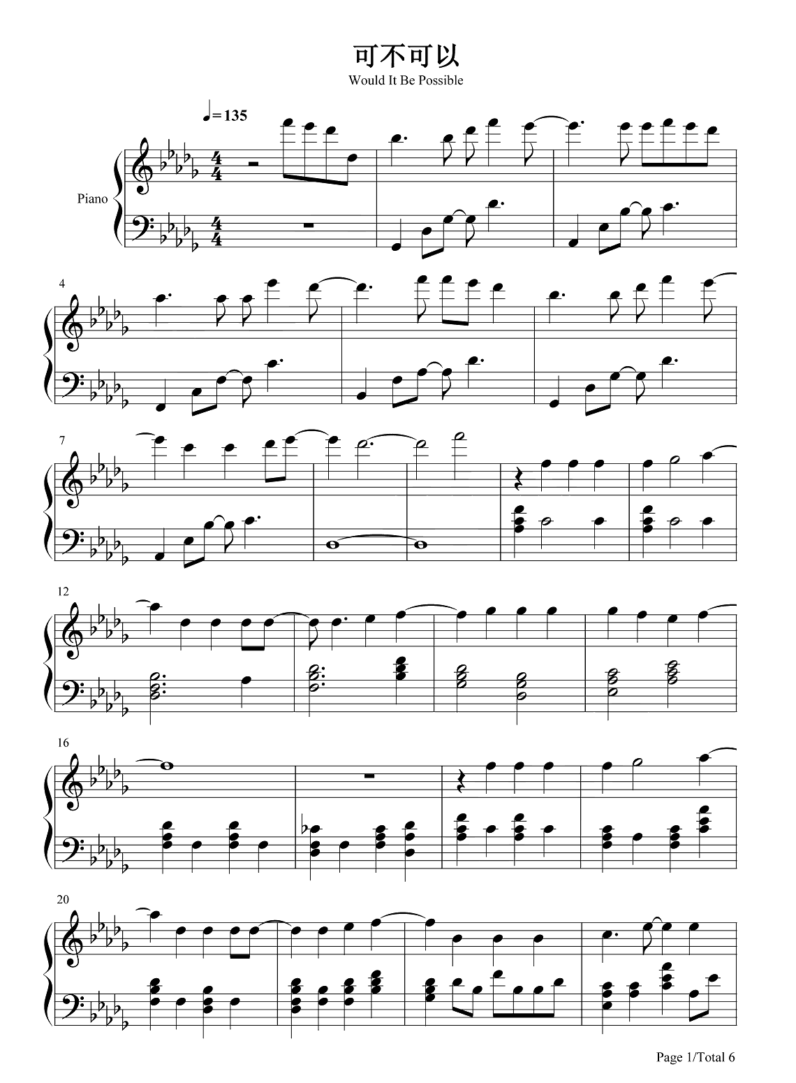 张紫豪《可不可以》钢琴谱...