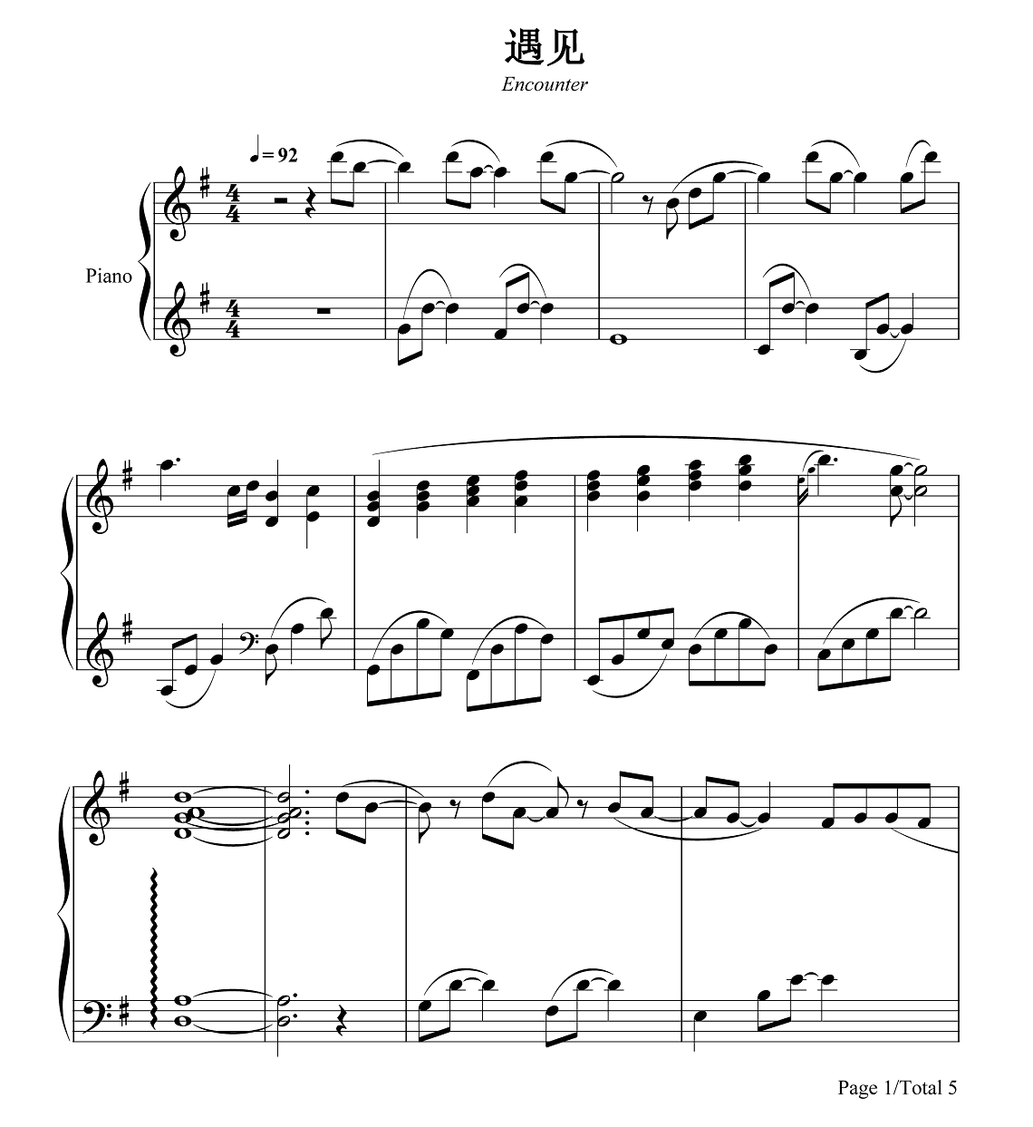 钢琴孙燕姿《遇见》钢琴谱