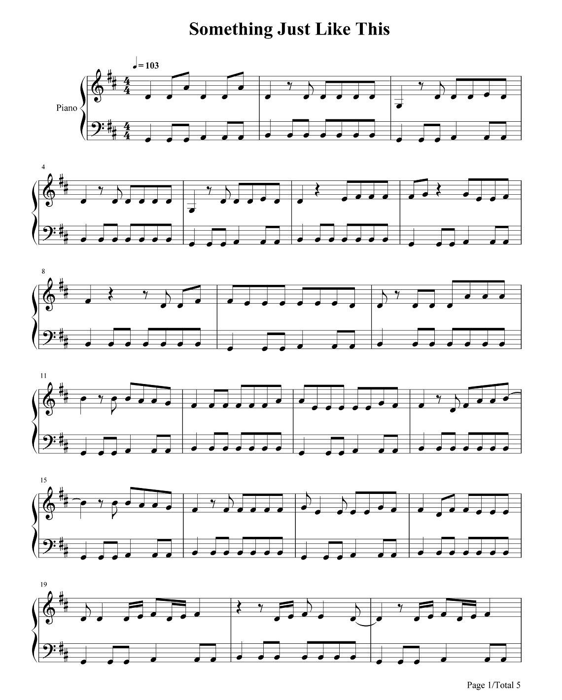 钢琴《Something Just Like This》钢琴谱