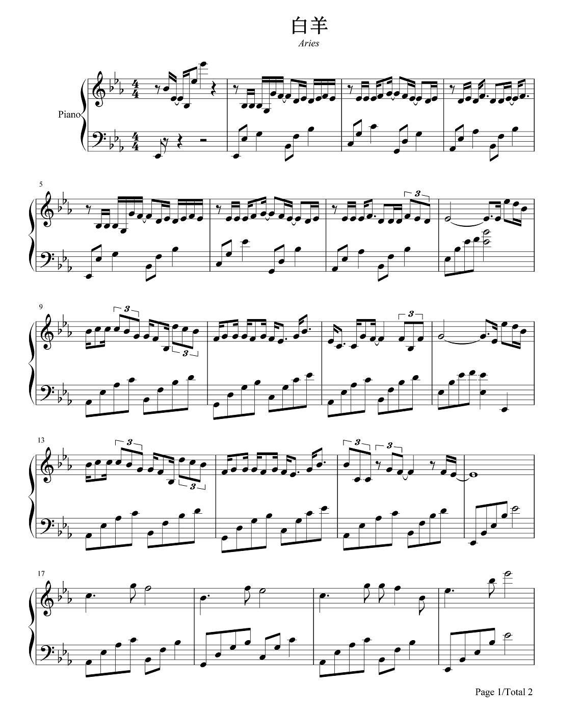 钢琴徐秉龙、沈以诚《白羊》钢琴谱