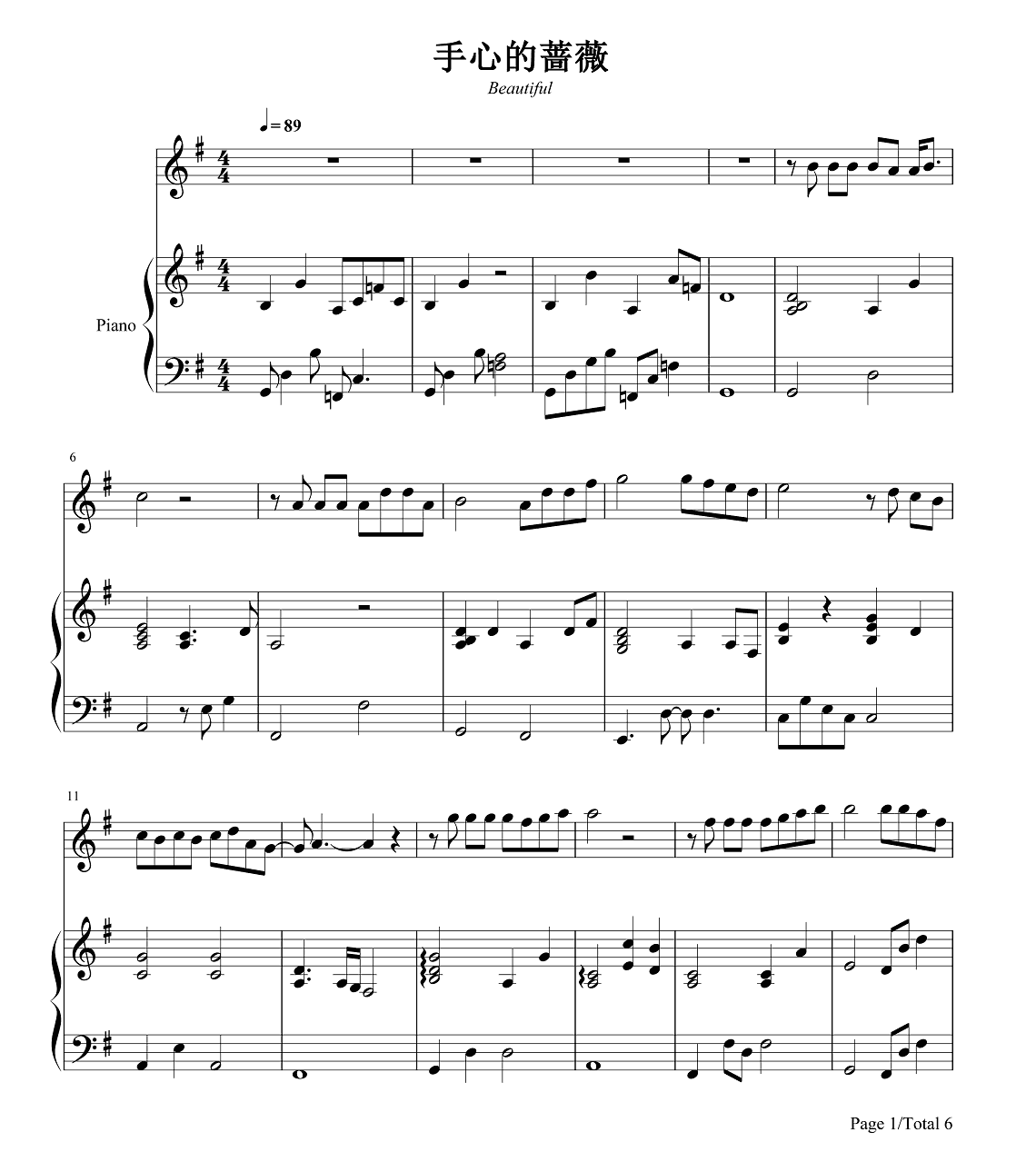 钢琴林俊杰、邓紫棋《手心的蔷薇》钢琴谱