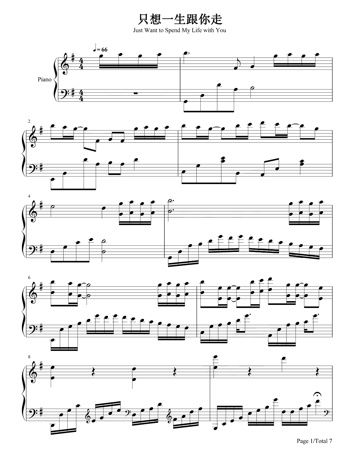 张学友《只想一生跟你走》钢琴谱...