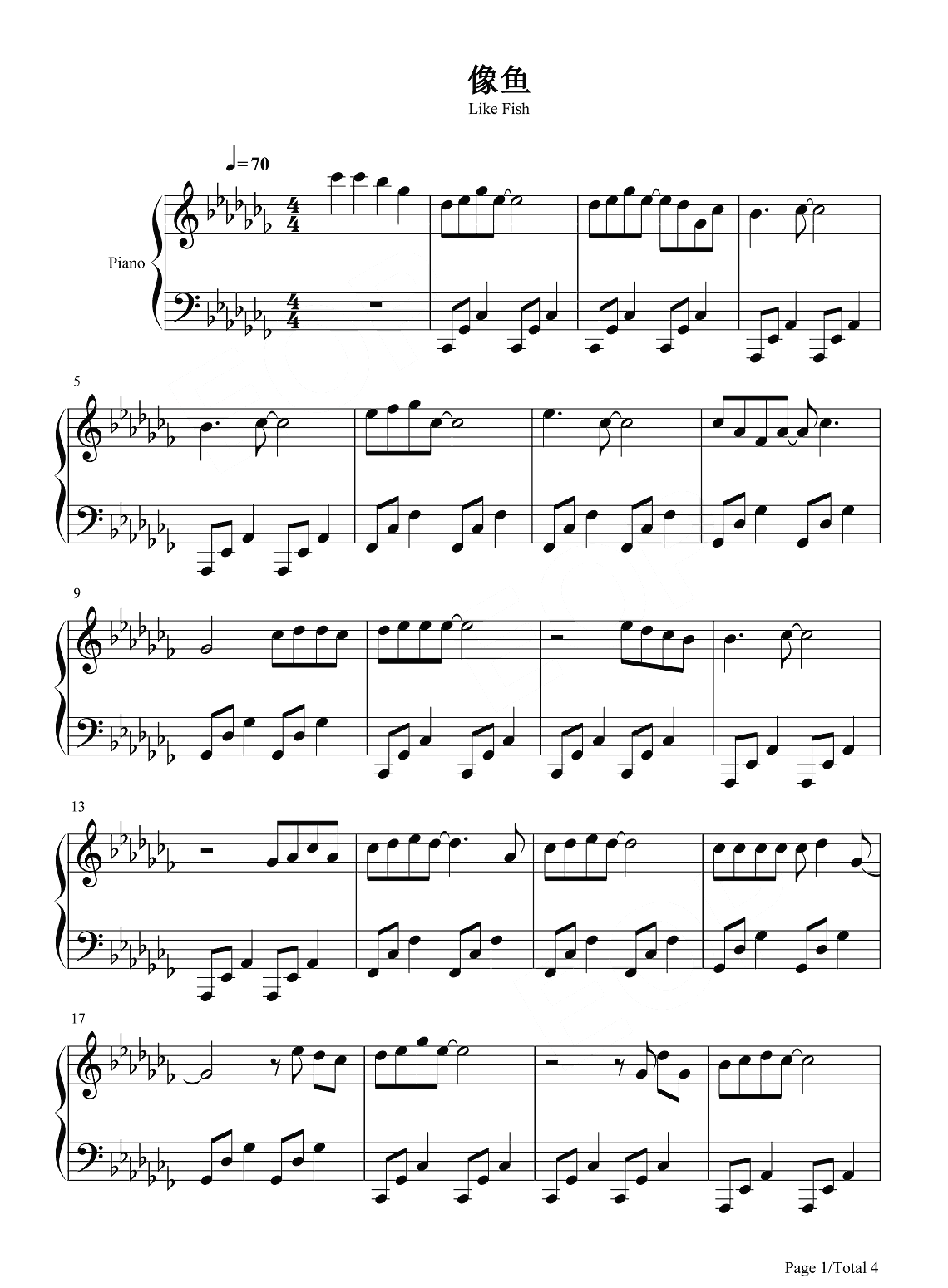 钢琴王贰浪《像鱼》钢琴谱