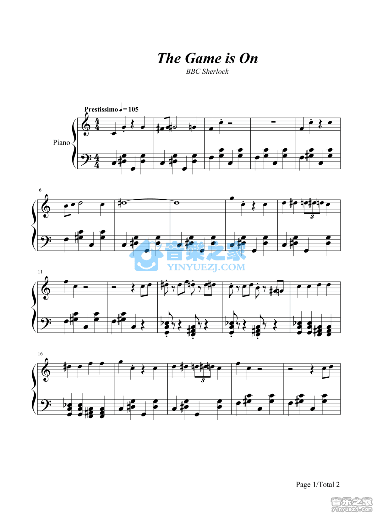 钢琴神探夏洛克《The Game is On》钢琴五线谱