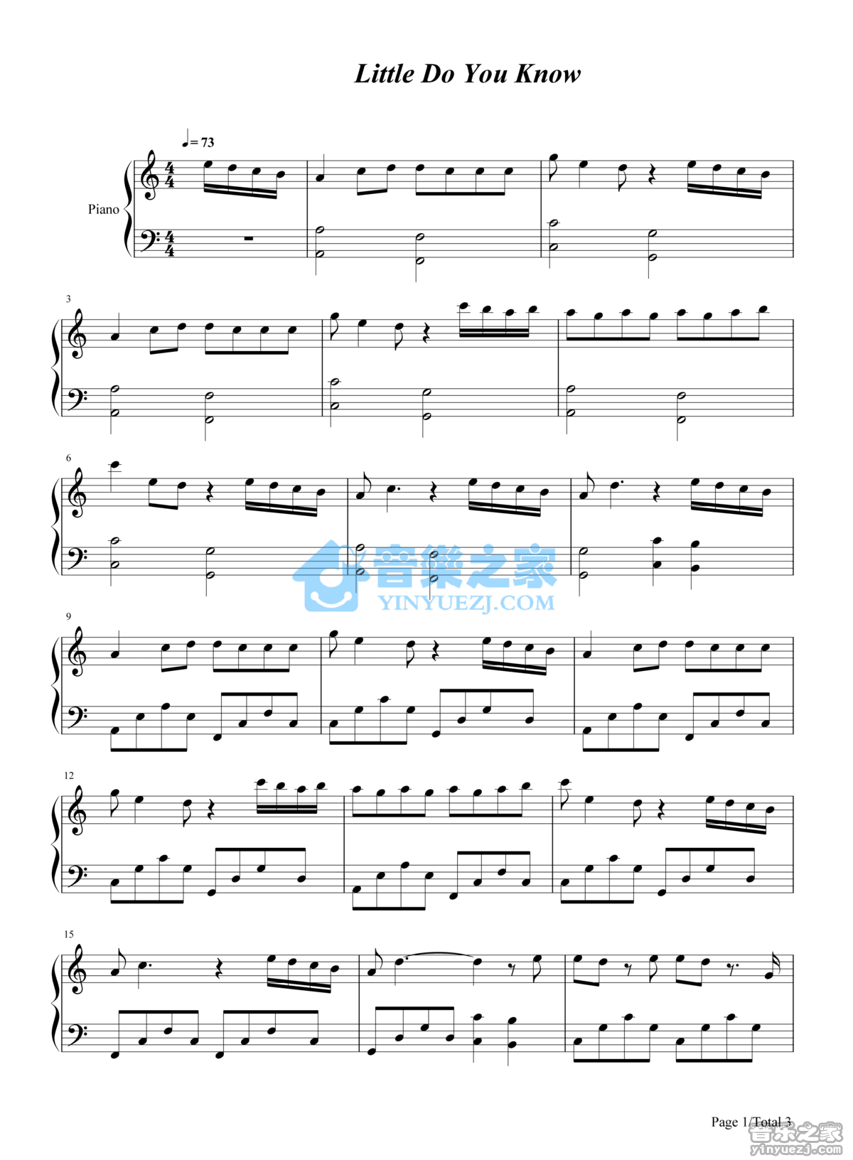 钢琴完整版 Alex/Sierra《Little Do You Know》钢琴五线谱